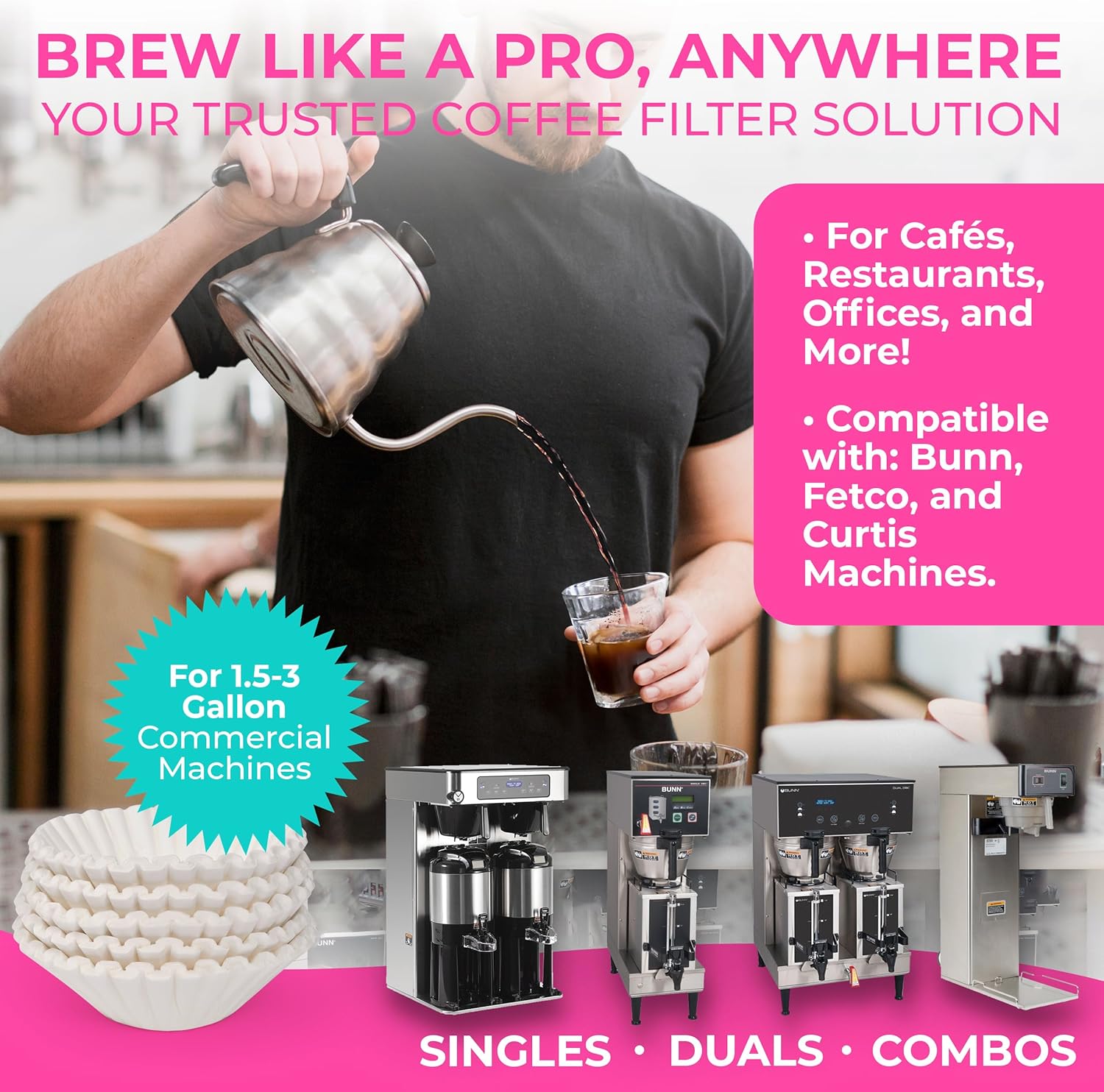 - Extra Large Filters for High-Volume Brewing (12.5” x 4.5”) – Designed for 1.5 to 3-gallon commercial brewers, these 12.5” x 4.5” coffee and tea filters fit 13” x 5” brew baskets, ensuring a secure fit and mess-free brewing in restaurants, cafés, banquet halls, gas stations, and more.