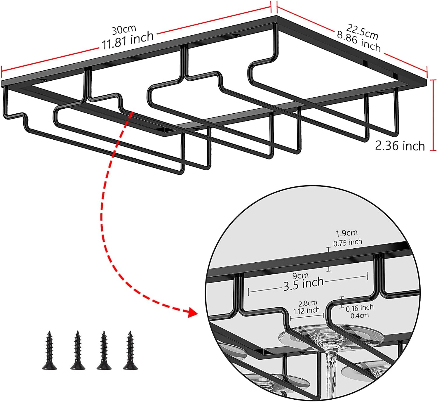 - The installation process is simple and easy to understand, no need to drill holes in the cabinet, firm and firm after fixing, organize your wine glass collection, and can put 6-9 wine glasses according to the size of the wine glass.