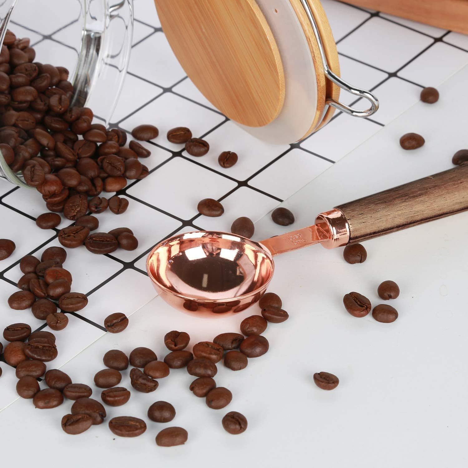 - Complete Set Includes:1 glass sealed jars (Height 7" x Diameter 3.9",Capacity:40floz/1200ml),1 wooden handle coffee scoop(1 TBSP) and label stickers.