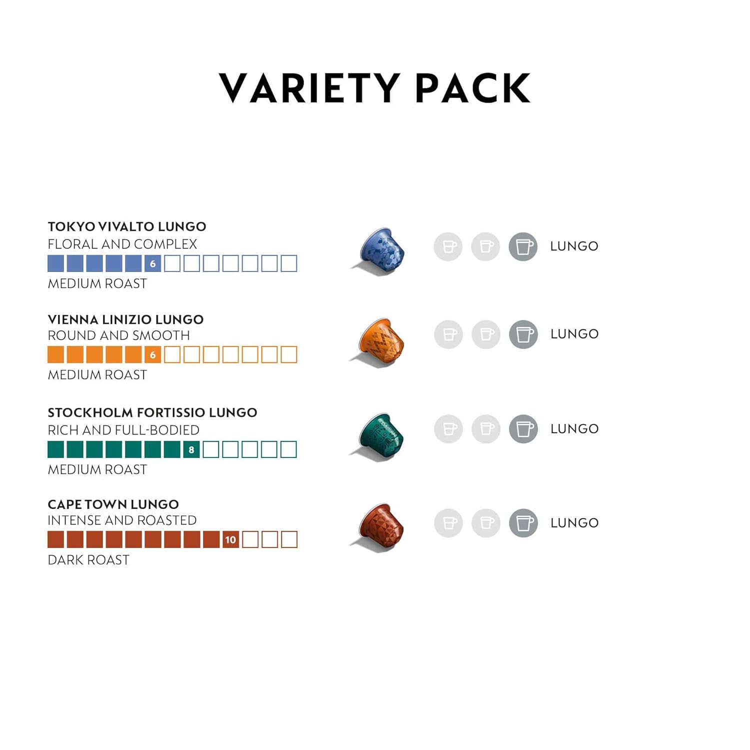 Nespresso Capsules Original Line, Morning Lungo Blends Variety Pack, Mild to Medium to Dark Roast Coffee, 50-Count Coffee Pods