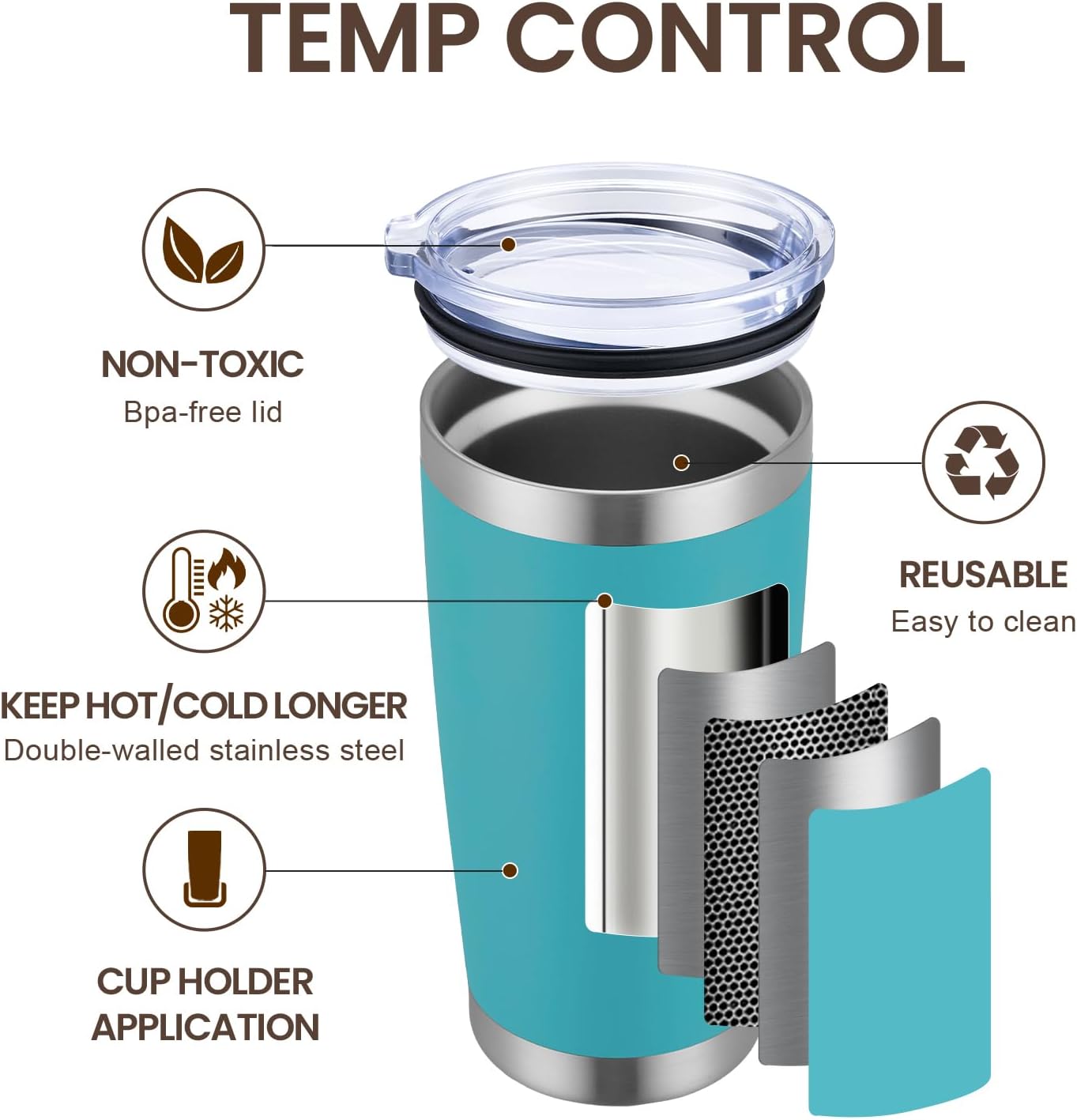 MEWAY 20oz Tumbler 8 Pack Double Wall Vacuum Insulated Travel Mug Bulk, Stainless Steel Tumblers with Lid and Straw, Durable Powder Coated Coffee Cups for Cold & Hot Drinks (Light Blue, 8)