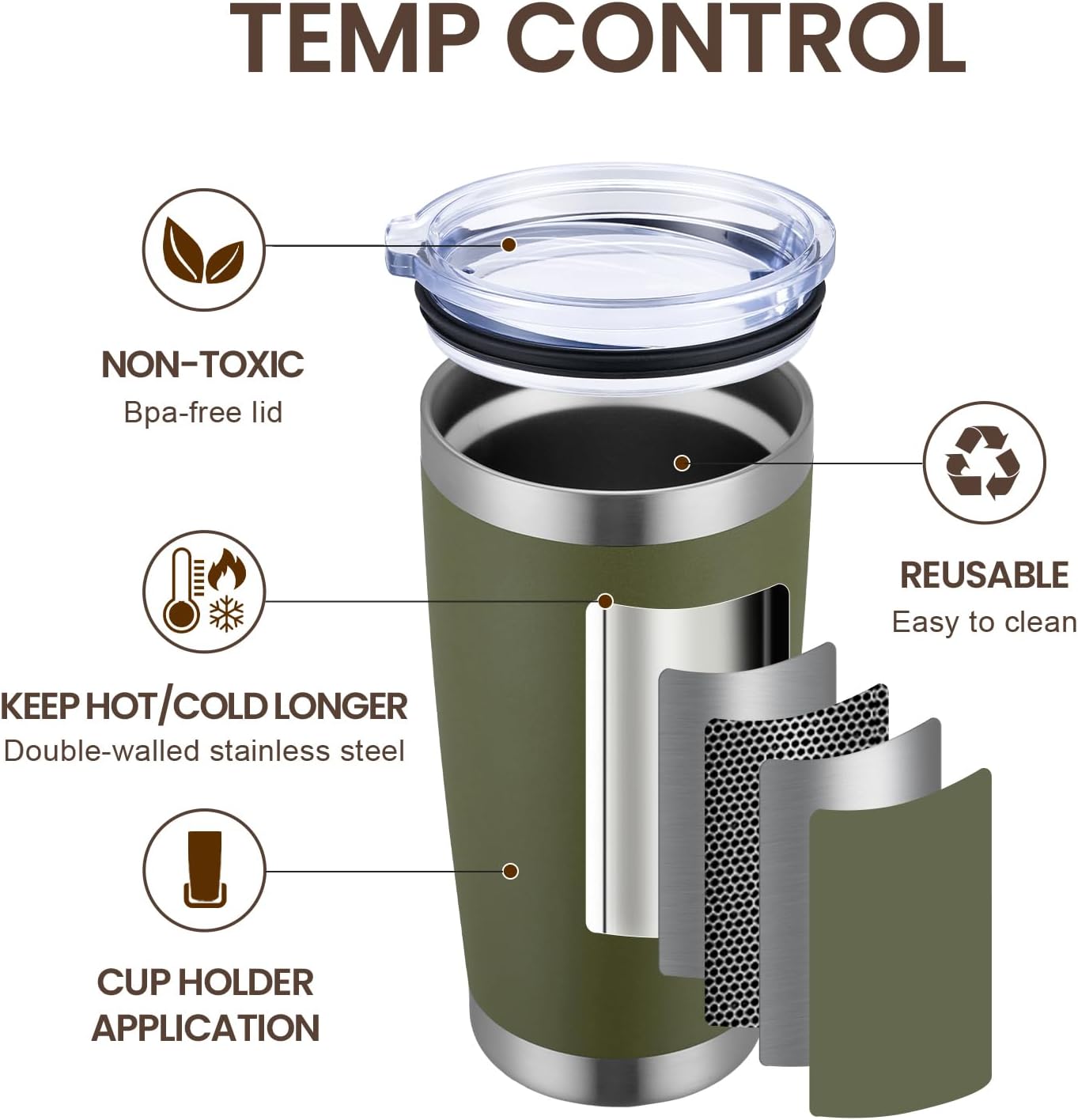 MEWAY 20oz Tumbler 4 Pack Double Wall Vacuum Insulated Travel Mug Bulk, Stainless Steel Tumblers with Lid and Straw, Durable Powder Coated Coffee Cups for Cold & Hot Drinks (Army Green, 4)