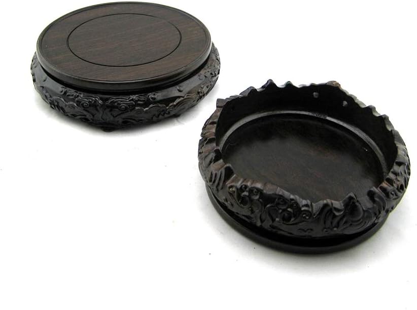 GOLDY&WENDY Oriental Luxury Round Elm Solid Wood Vase Display Stands Pedestal Base, Bat Pattern 5.4 in Diameter