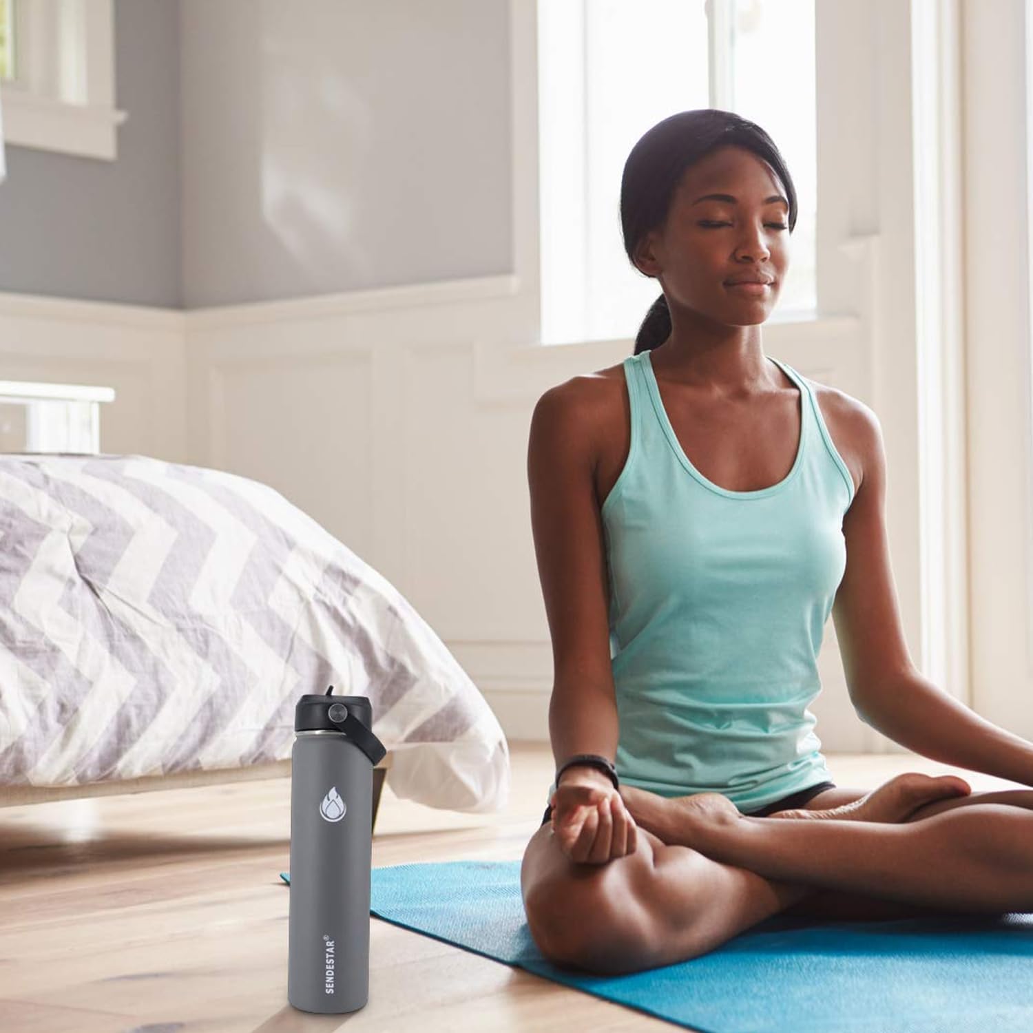 SENDESTAR Stainless Steel Water Bottle, Wide Mouth Water Bottle 24 oz with Straw Lid, Spout Lid, Double Wall Vacuum Insulated Leak Proof, Keeps Liquids Hot or Cold (Graphite)