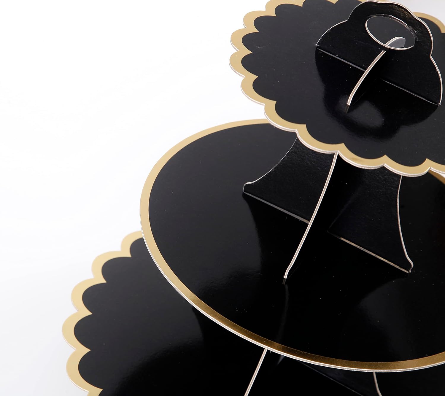 3-Tier Cupcake Stand, Lace Trim Cake Stand holder, Tiered DIY Cupcake Stand Tower for Dessert Table Displays, Birthday Theme Party Favors Decoration, Floral Tea Party, 12" W x 12.8" H, Black