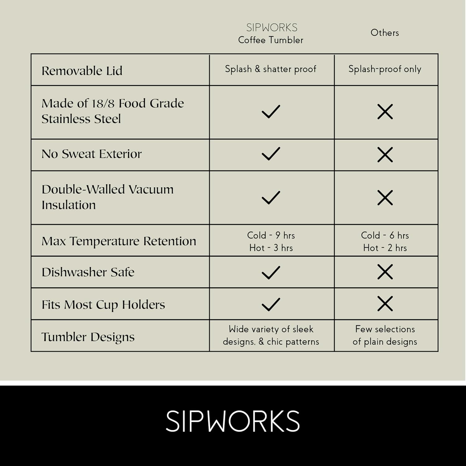 - Raise Your Tumblers with Us: Sip in style with Sipworks’ stunning collection of unique insulated tumblers that will keep the vibe and taste of your drink just the way you like it — whether for fancy parties, boozy brunches, or daily routine.