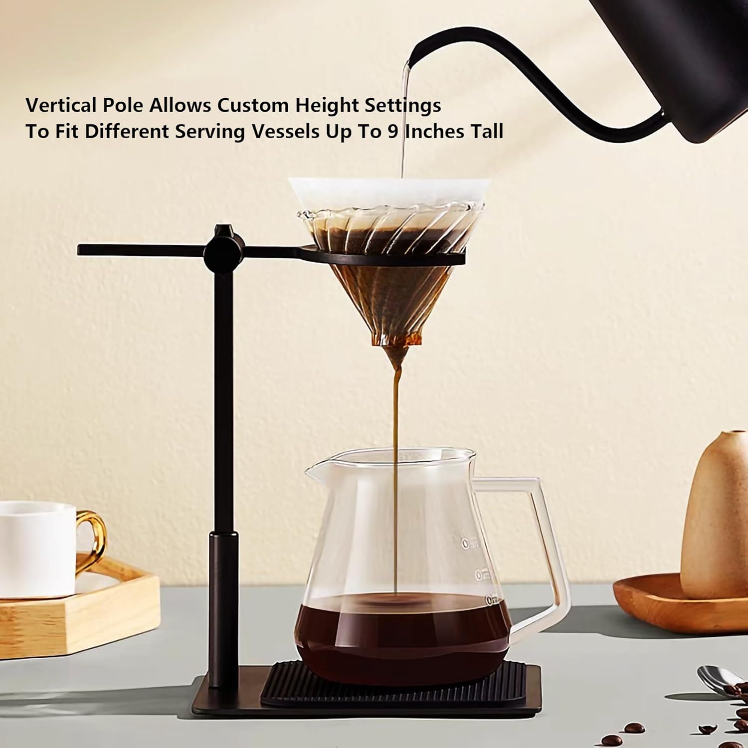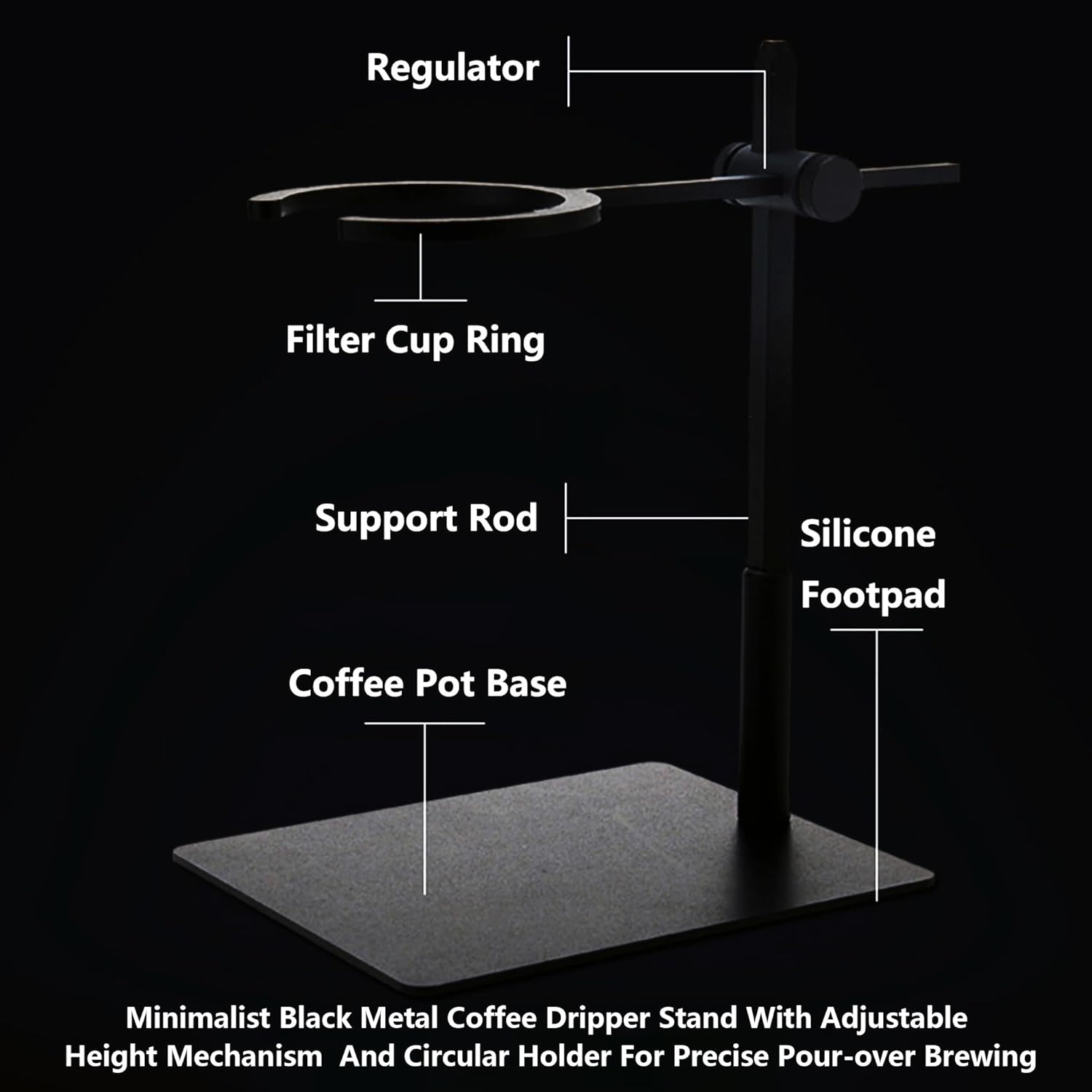 - DESIGN: Minimalist black metal coffee dripper stand with adjustable height mechanism and circular holder for precise pour-over brewing