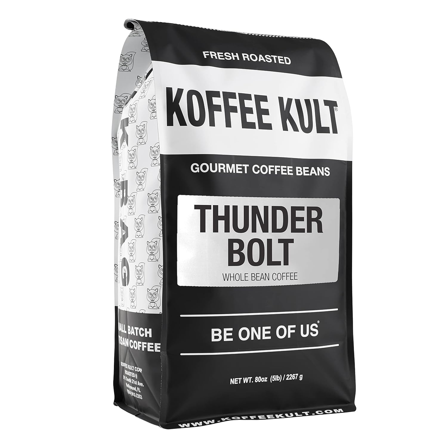 Koffee Kult Thunder Bolt Dark French Roast Whole Bean Coffee - Small Batch 100% Arabica Gourmet Blend, Bold and Well Balanced, 80oz Resealable Package