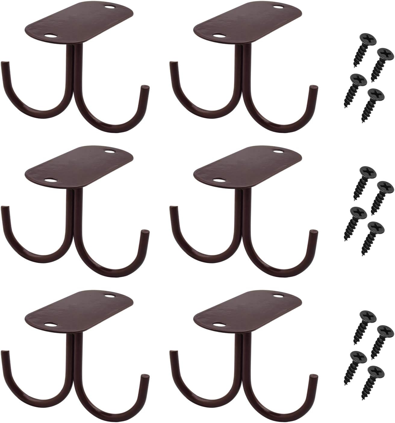 Mocoum Under Cabinet Mug Hooks, Rustic Mug Organizer Rack Under Shelf Hanging Rack for Mugs, Coffee Cups, Utensils Brown, Holds 6 (Max. 6 Mugs)