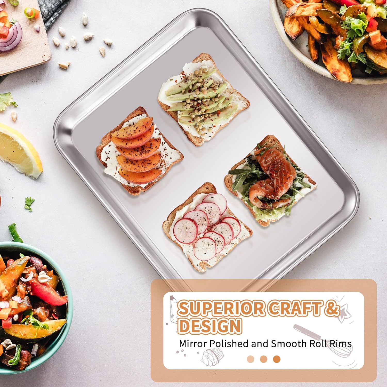 - 🍟 𝐒𝐔𝐁𝐒𝐓𝐀𝐍𝐓𝐈𝐀𝐋 & 𝐃𝐔𝐑𝐀𝐁𝐋𝐄: Our stainless cookie sheet set features its solid construction and feel sturdy enough when holding in hands, nice weight to cook with, rust resistant, high hardness, no distortion, no worries about bending, durable to use for years.