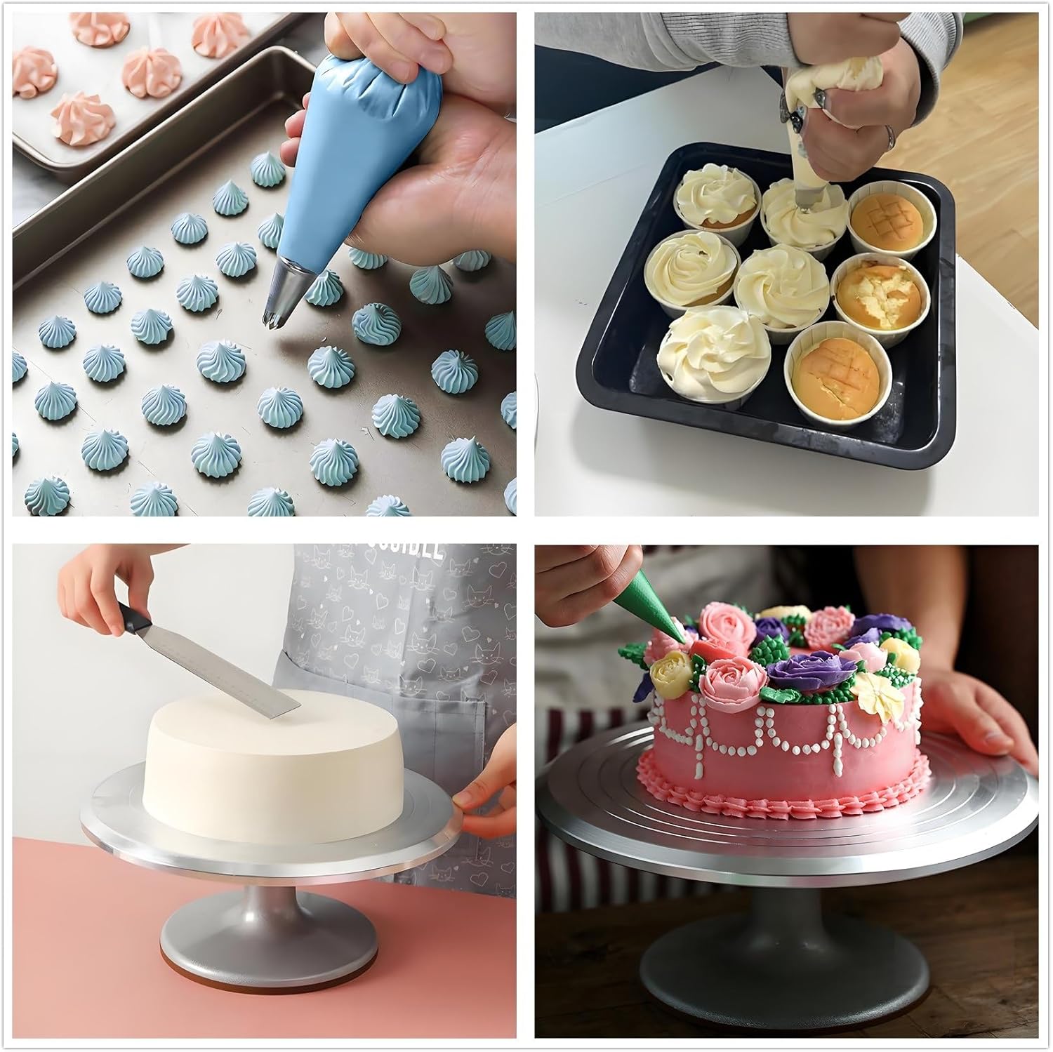 - 【Revolving Cake Turntable Stand】: Cake spinner constructed with heavy duty aluminium alloy provides an excellent stability on countertops, keeps the cake stand from moving. Non-slip surface & rubber feet to help keep your cake and cake stand in place while decorating.