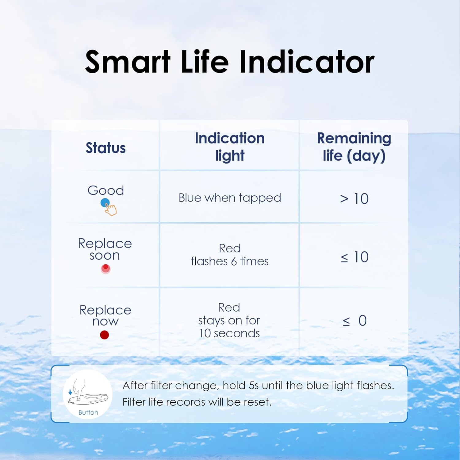 - Intelligent Indicator:Our Intelligent design of the pitcher ensures a healthier and hassle-free life for users, as you can monitor water quality at any time. Note:This system DOES NOT lower TDS value.