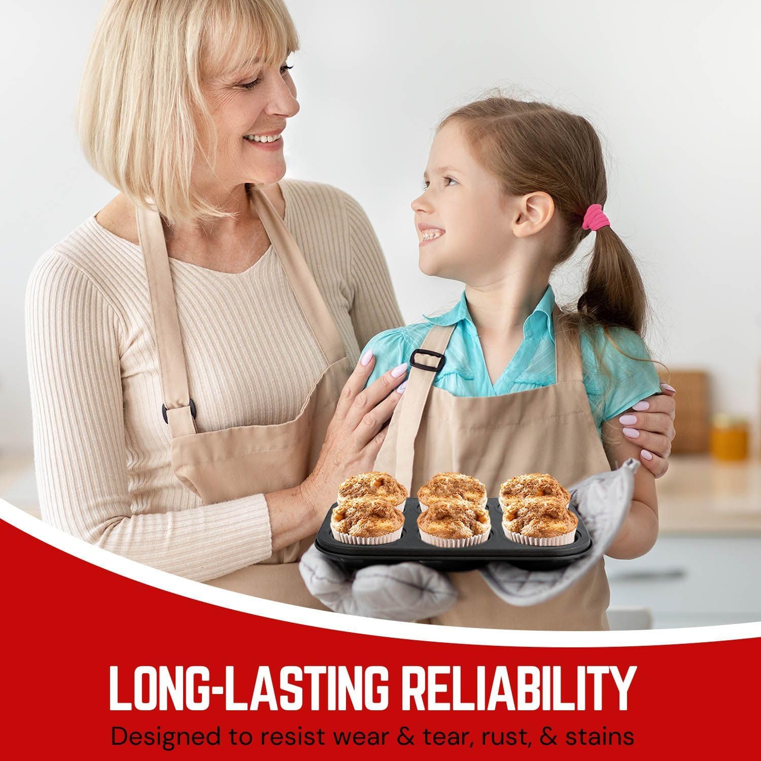 - Easy to Use with the Non-Stick Surface - The non-stick coating delivers quick food release and doesn't lead to you sticking your thumb in a muffin or cupcake, or even worse, getting burned to try to rotate the pan in the oven. A healthy way of baking using less cooking oil and baking time