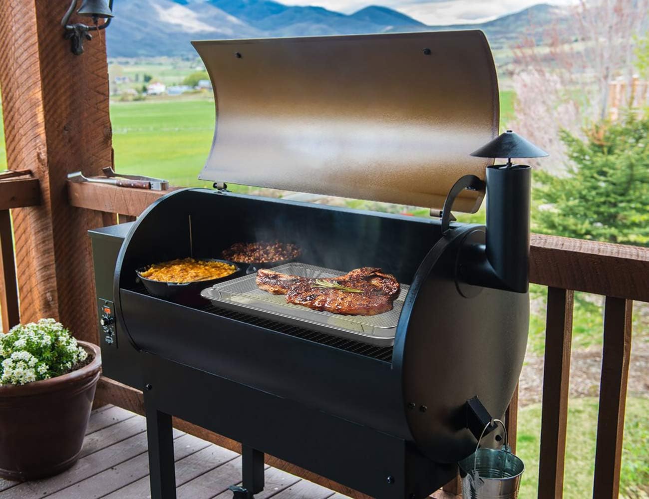 - 【Design for gril】- Onlyfire roasting pan is designed for wood pellet grill, perfect for roasting meats, vegetables, beefs and so on. With this pan, the smoker effect of the pellet grill is better realized, make foods full of smoky flavor and juicy.