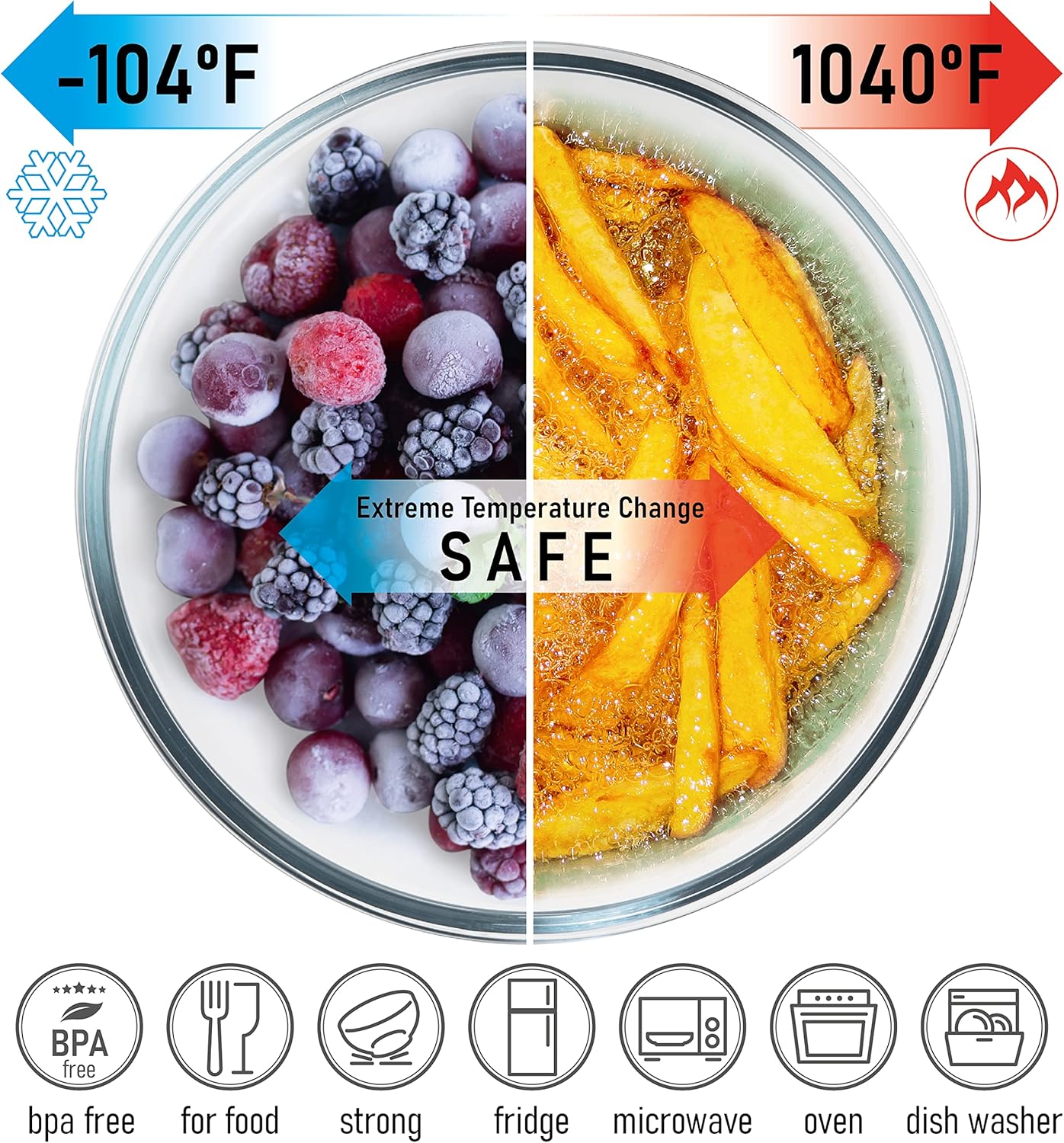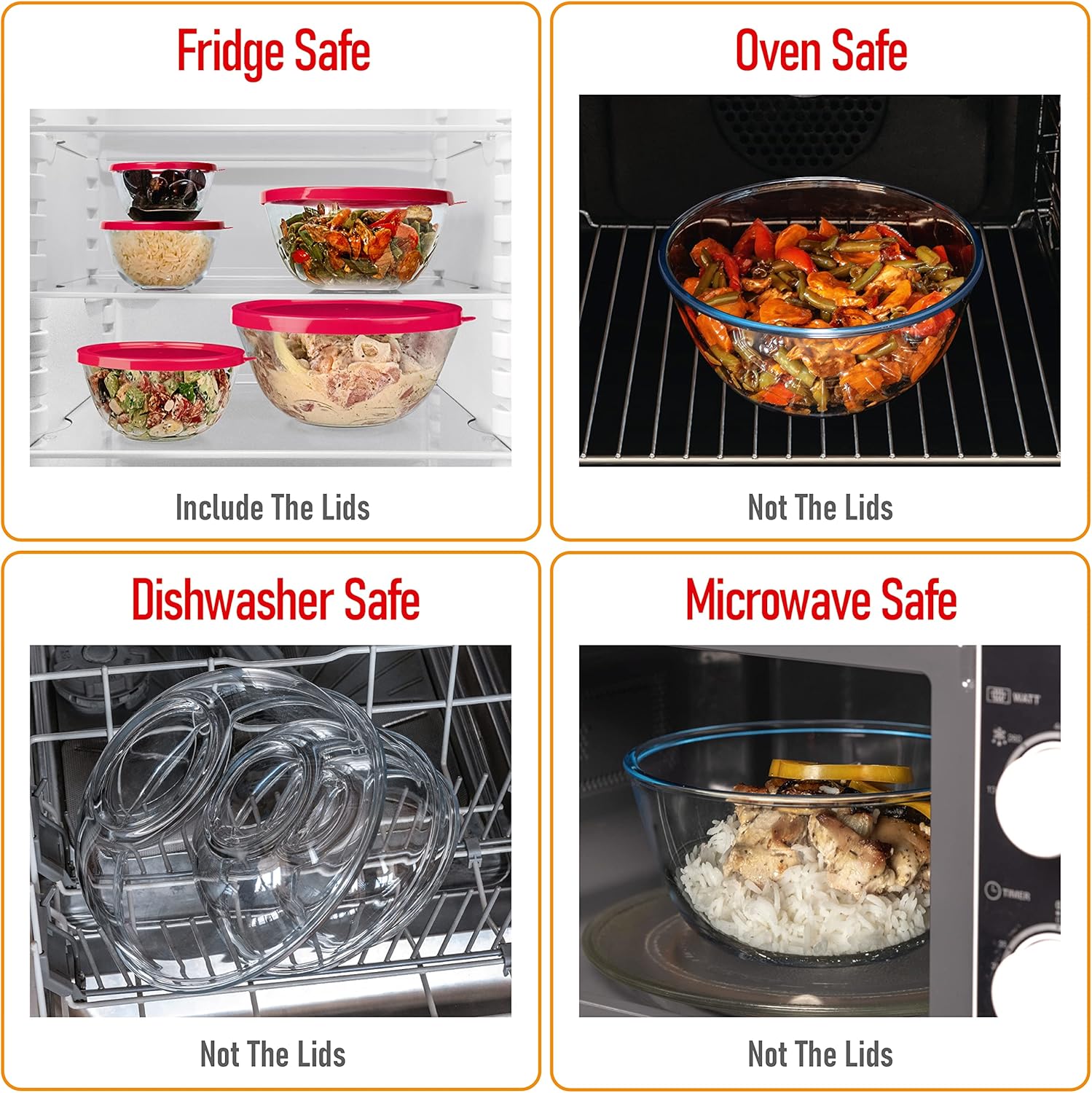 - MULTIPURPOSE. Perfect for baking and for storage, this glass container set is perfect for hot and cold foods. Lids are designed to fit tightly and are easy to open and close.