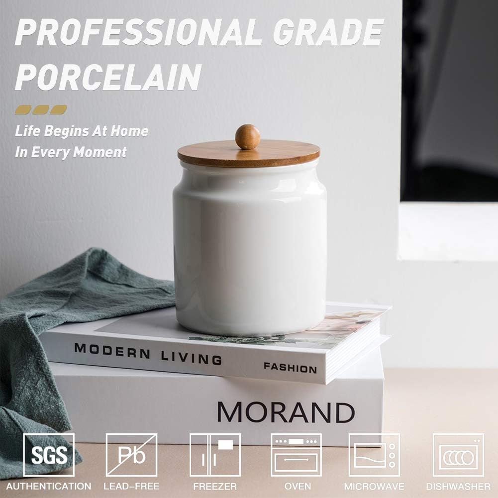 - Beautiful and Practical - You will fall in love with the unique ceramic material, the environmentally friendly and healthy wooden lid, and the rubber ring can form an airtight seal to keep the contents fresh and dry.