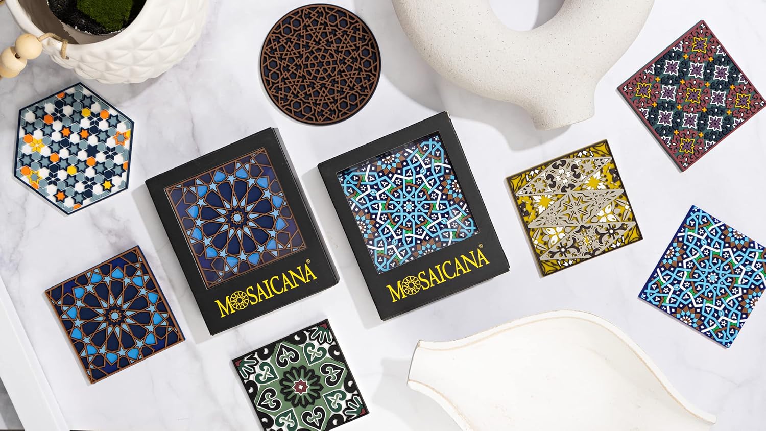 - COLORFUL DESIGNS THAT YOU WON'T SEE SIMILAR ANYWHERE Our designs are based on 3D geometric patterns from ancient history, we applied the designs on 3D colorful coasters that will add a nice touch to your home collection