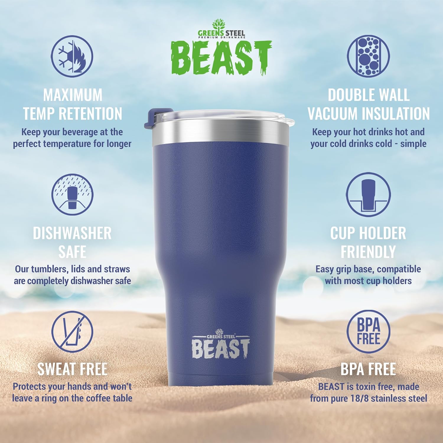 - BIGGER & BETTER – NEW HUGE 40oz BEAST has arrived! Offering unprecedented capacity. Now hold even more of your favorite beverage at the perfect temperature for longer!