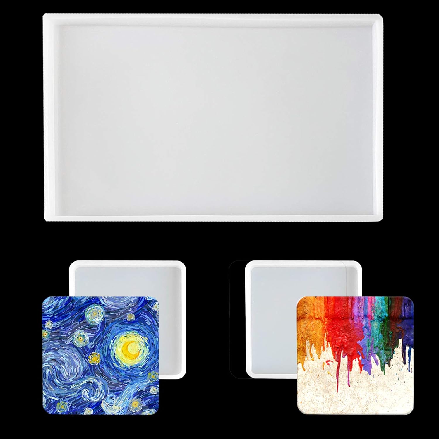 - Package Include:1PCS Rectangle tray molds(6x10x0.5inch)+2PCS square Mold(4.3x4.3x0.4inch),perfect for creating geode coaster with our resin mold set