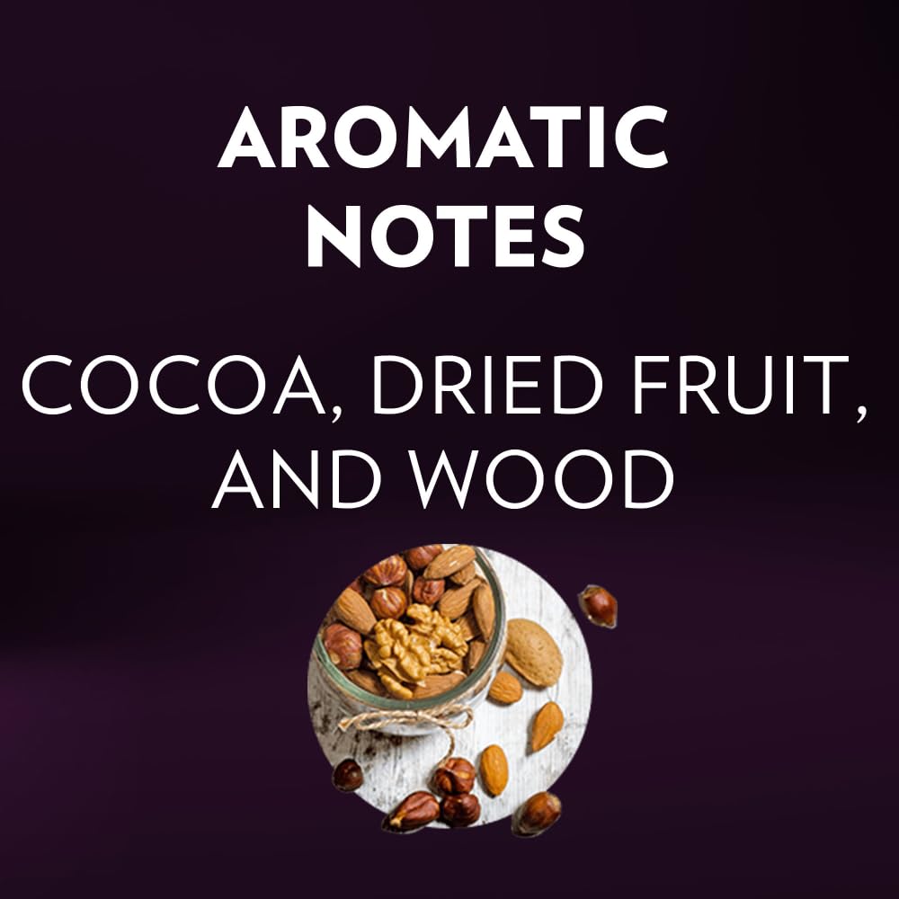 - AROMATIC NOTES: Cocoa, dried fruit, and a slightly smoky finish.