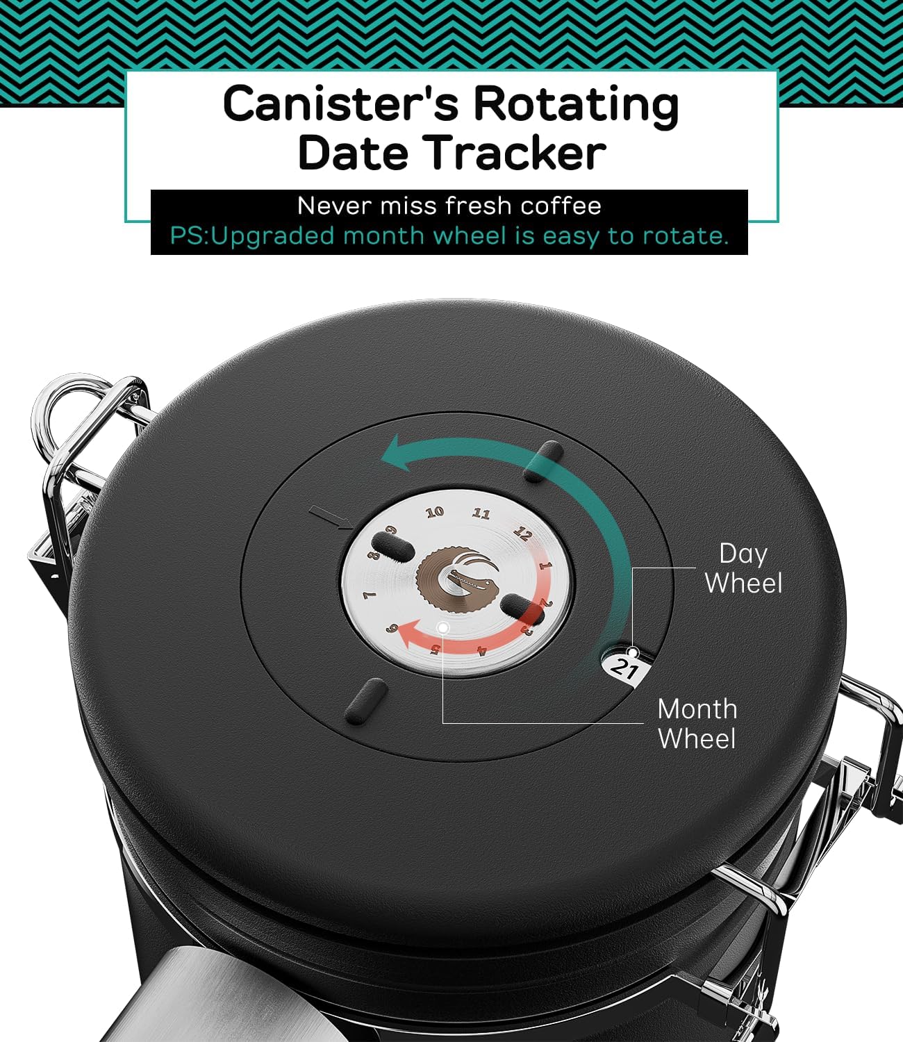 - Built-In Date Tracker : Never guess freshness again with the easy-to-use date tracker to monitor your coffee’s peak flavor period and ensure every brew tastes like day one. In addition, the stainless steel coffee Measuring scoop can be easily hung on the side of the coffee jar for easy use