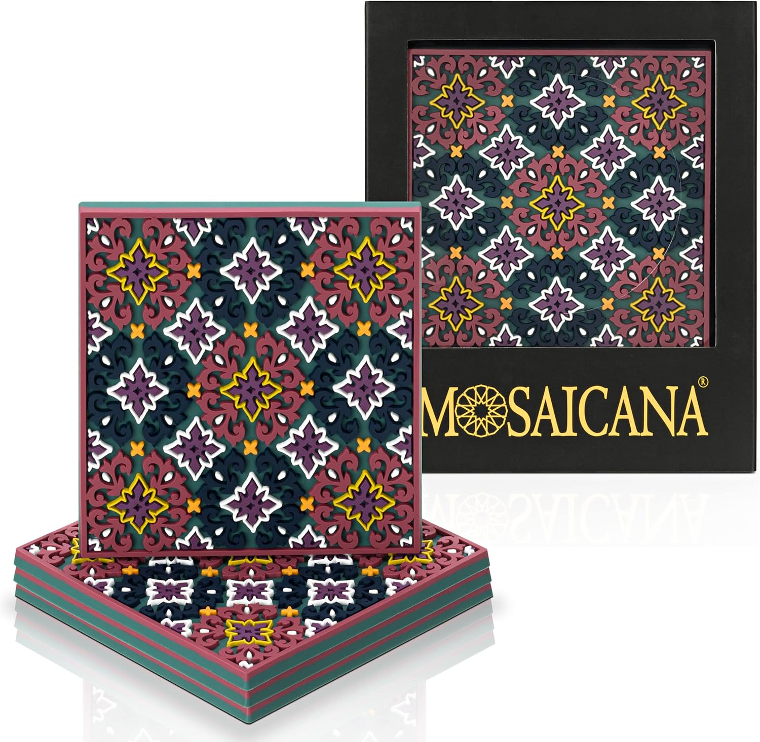 - COLORFUL DESIGNS THAT YOU WON'T SEE SIMILAR ANYWHERE Our designs are based on 3D geometric patterns from ancient history, we applied the designs on 3D colorful coasters that will add a nice touch to your home collection