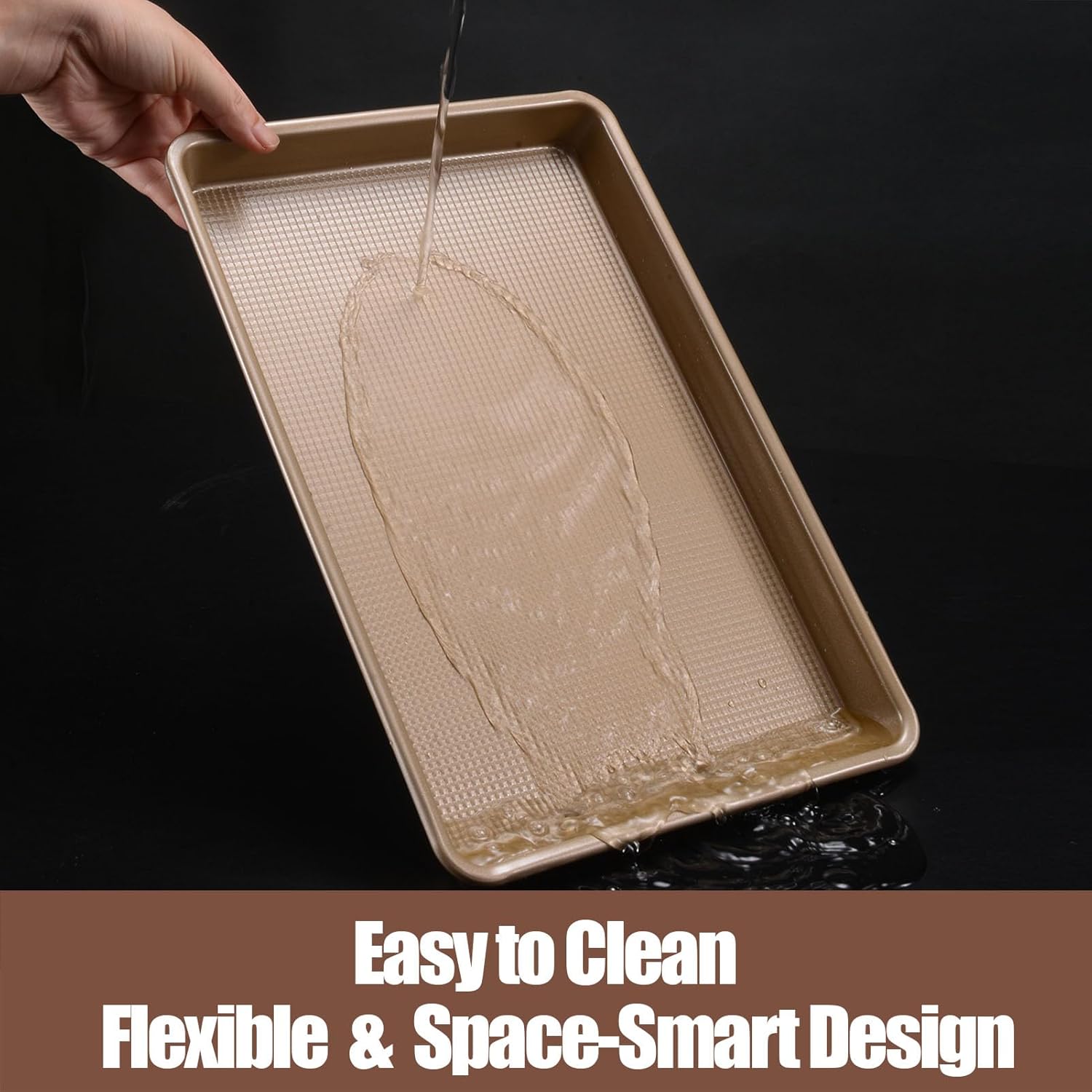 - Quick-Clean & Space-Smart Design : Smooth rolled edges prevent drips; Easy to clean in 15 seconds, hand-wash recommended to preserve coating. *Fits compact ovens (10x15”) – ideal for toaster/apartments/RV ovens!*