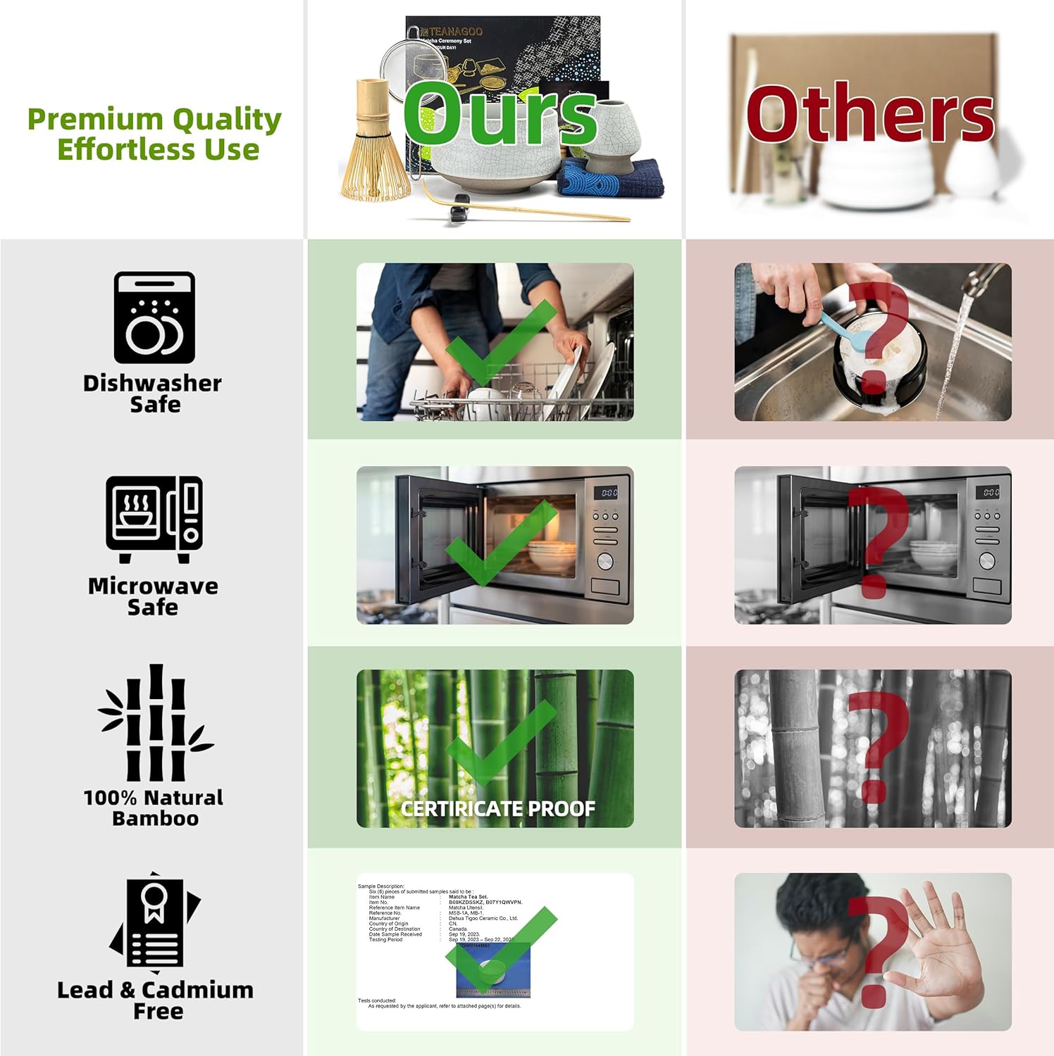 - HIGH SAFETY & QUALITY: Our Handcraft Matcha Whisk, About 100 Fine Tines(百本立),100% Crafted From High Quality Bamboo With A Vegetable Oil Finish To Enhance Its Durability. Additionally, Our Ceramic Bowl Has Lead-free And Mercury-free Test Reports.food-grade And Eco-friendly