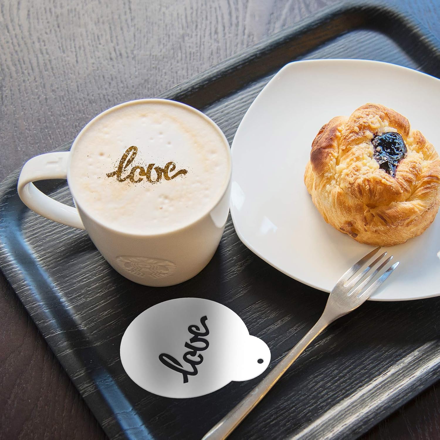 - Coffee Stencils Latte Art: 15 Pack Coffee Stencils have different patterns, diverse patterns meet all your needs and preference. Grafitti heart, I love you, love words, Roses, Teddy Bear, moon, leaves and butterfly. It brings together all the elements of Valentine's Day, make your lover a cup of designed coffee on Valentines Day morning, enjoy the coffee time and romance