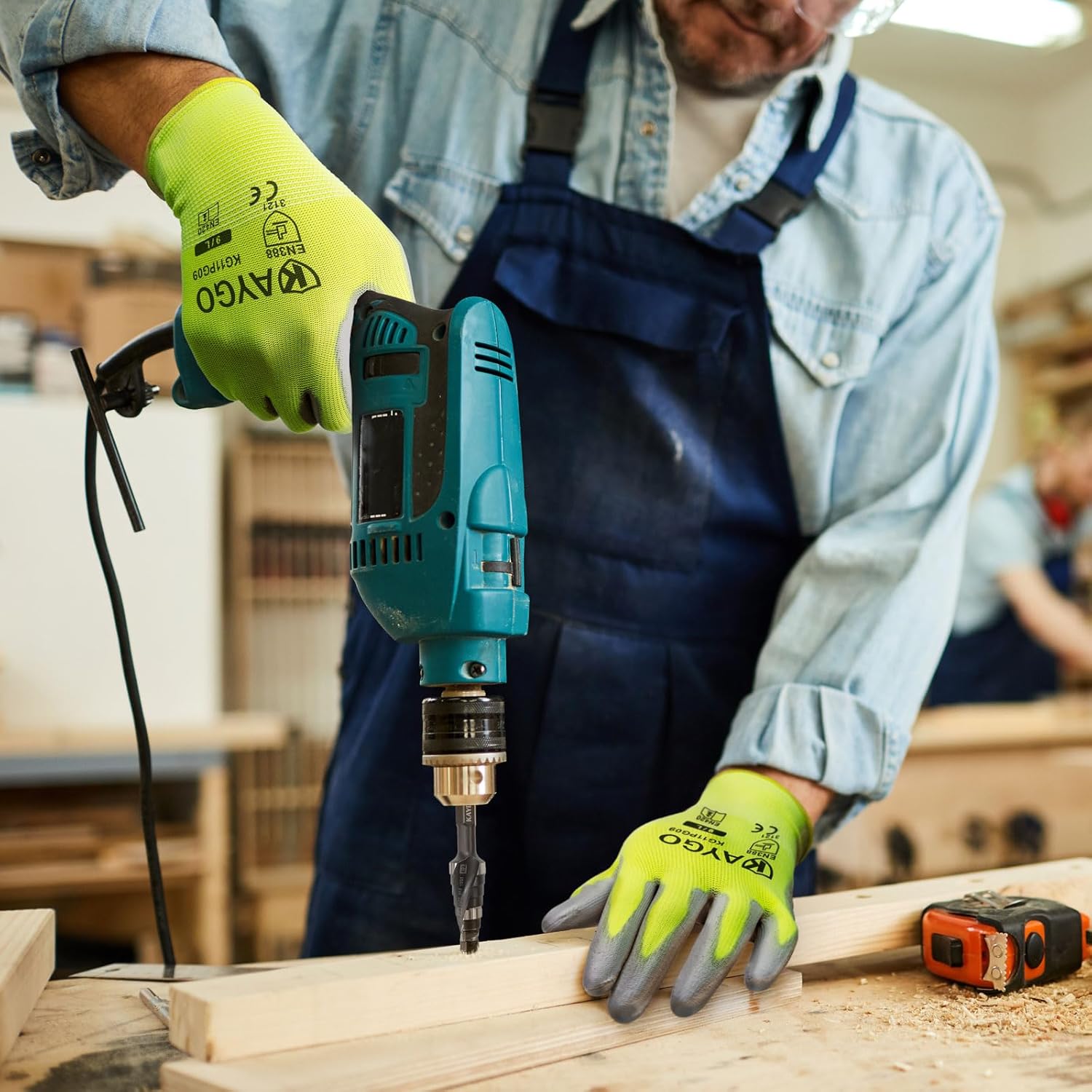 KAYGO Safety Work Gloves PU Coated-12 Pairs, KG11PB, Seamless Knit Glove with Polyurethane Coated Smooth Grip on Palm & Fingers, for Men and Women, Ideal for General Duty Work (XX-Large, Green)