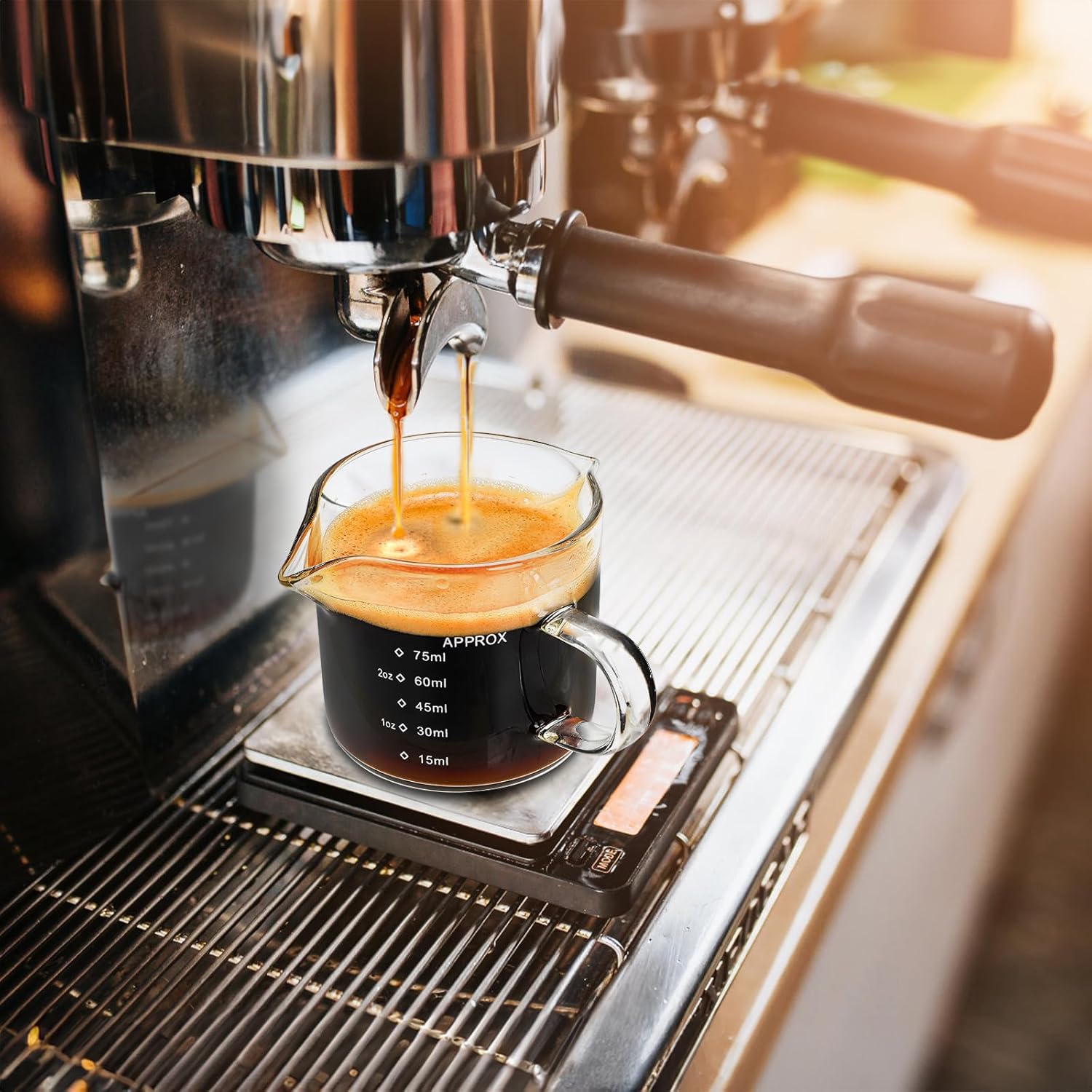 - Yarlung 4 pack glass measuring cups espresso shot glasses with double spouts and a comfortable pouring handle