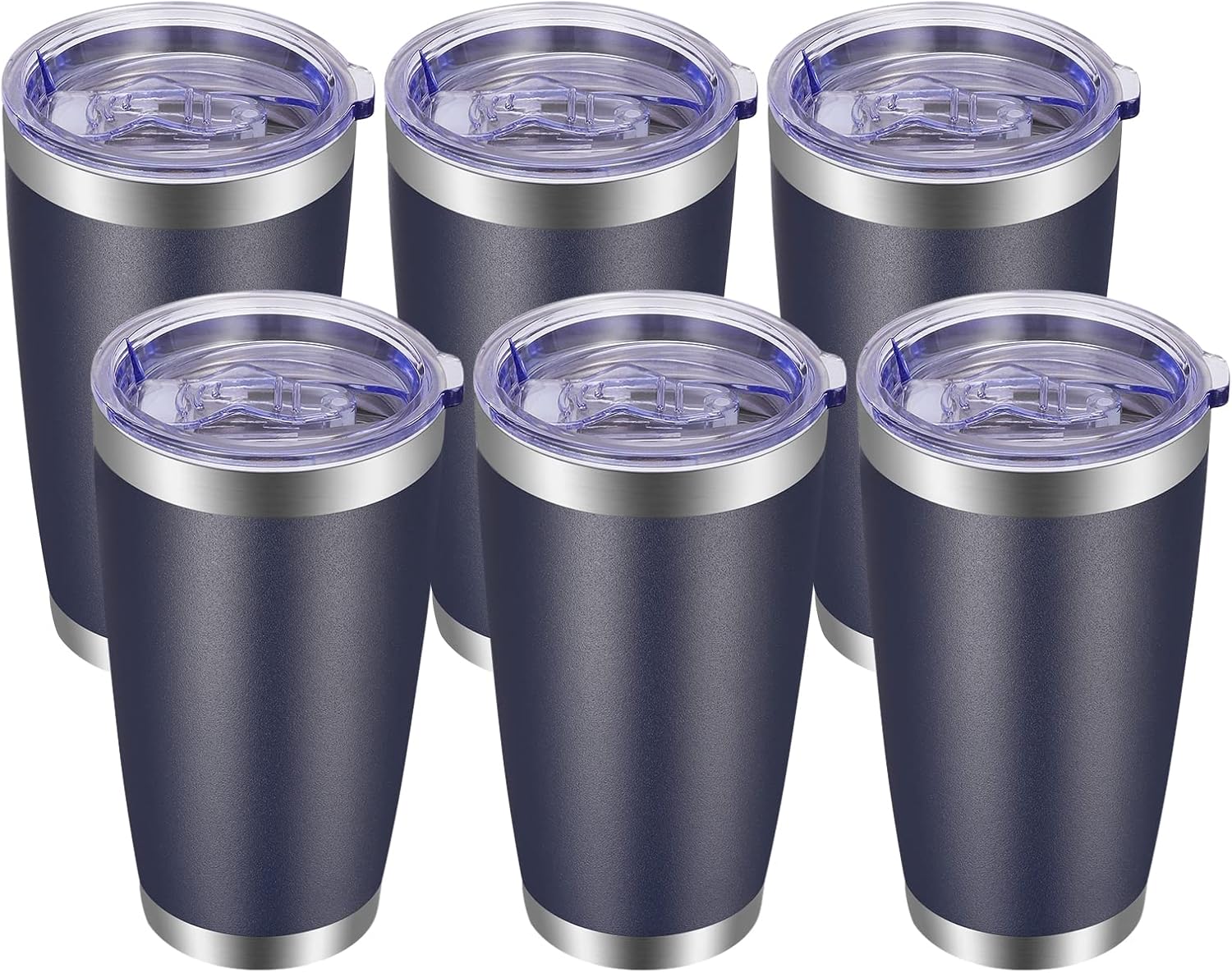 VEGOND 20oz Tumbler with Lid and Straw Stainless Steel Tumbler Cup Bulk Vacuum Insulated Double Wall Travel Coffee Mug Powder Coated Coffee Cup(Navy Blue 6 Pack