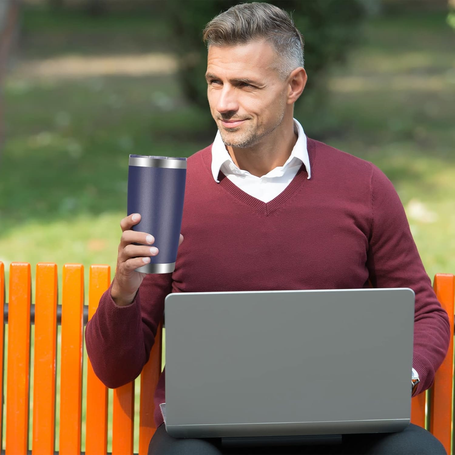 - 20oz Coffee Tumbler : the 20 ounce drink tumblers’ body height is 6.6", the Drink-through lid diameter is 3.4". It fits most car cup holder and ideal for use over a long period of time. Perfect for all-day outdoor events, conferences, business trips,commute and the like