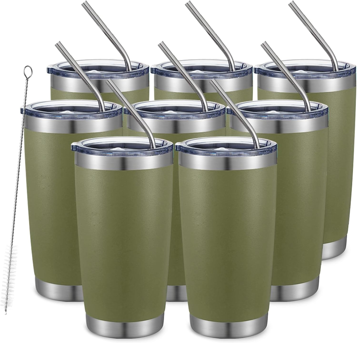 COMOOO 20oz Tumbler 8 Pack Double Wall Vacuum Insulated Travel Mug, Stainless Steel Tumbler with Lid and Straw Durable Powder Coated Insulated Coffee Cup for Cold & Hot Drinks,army green, 8 pack