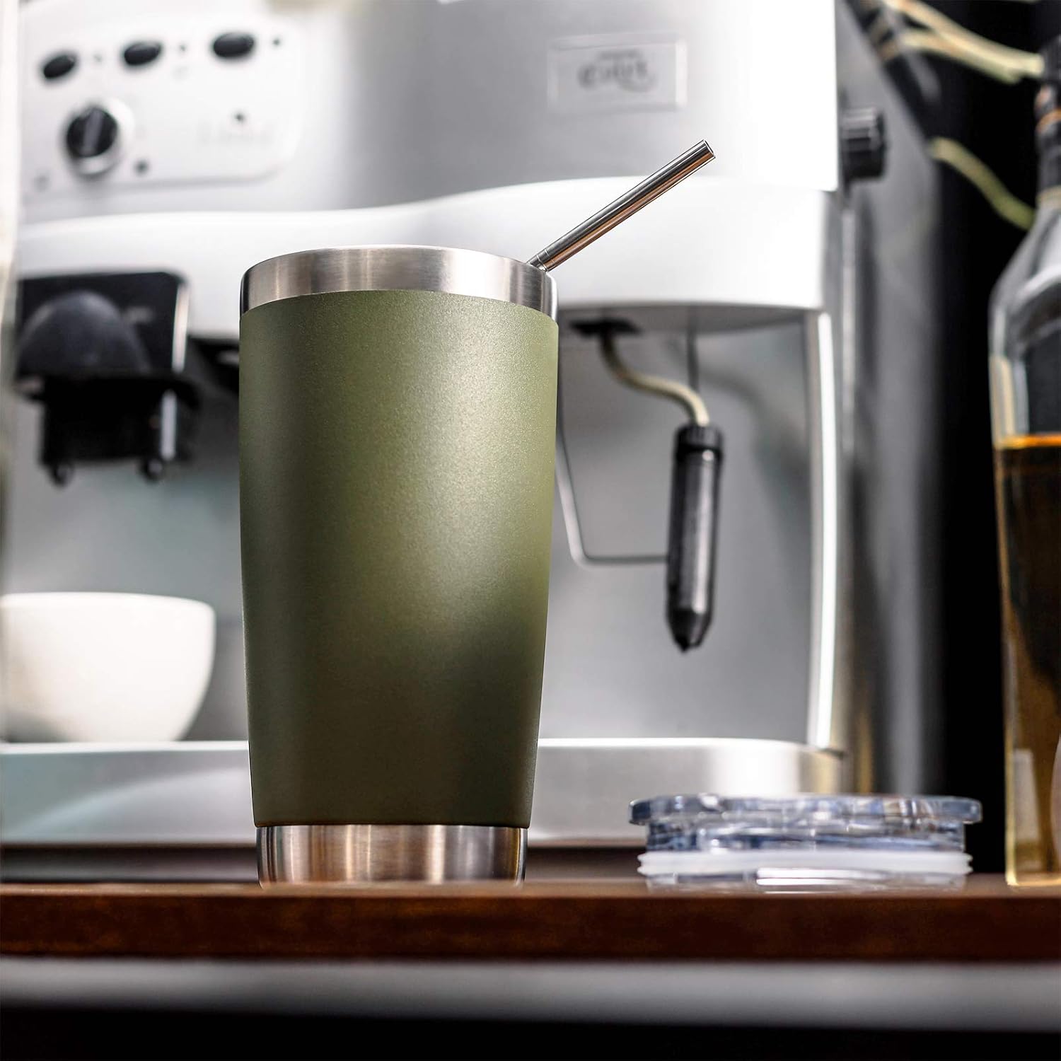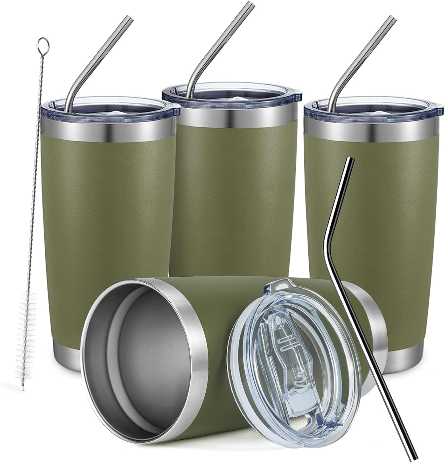COMOOO 20oz Tumbler Bulk Double Wall Vacuum Insulated Travel Mug, Stainless Steel Tumbler with Lid and Straw Durable Powder Coated Insulated Coffee Cup for Cold & Hot Drinks (Army Green, 4 Pack