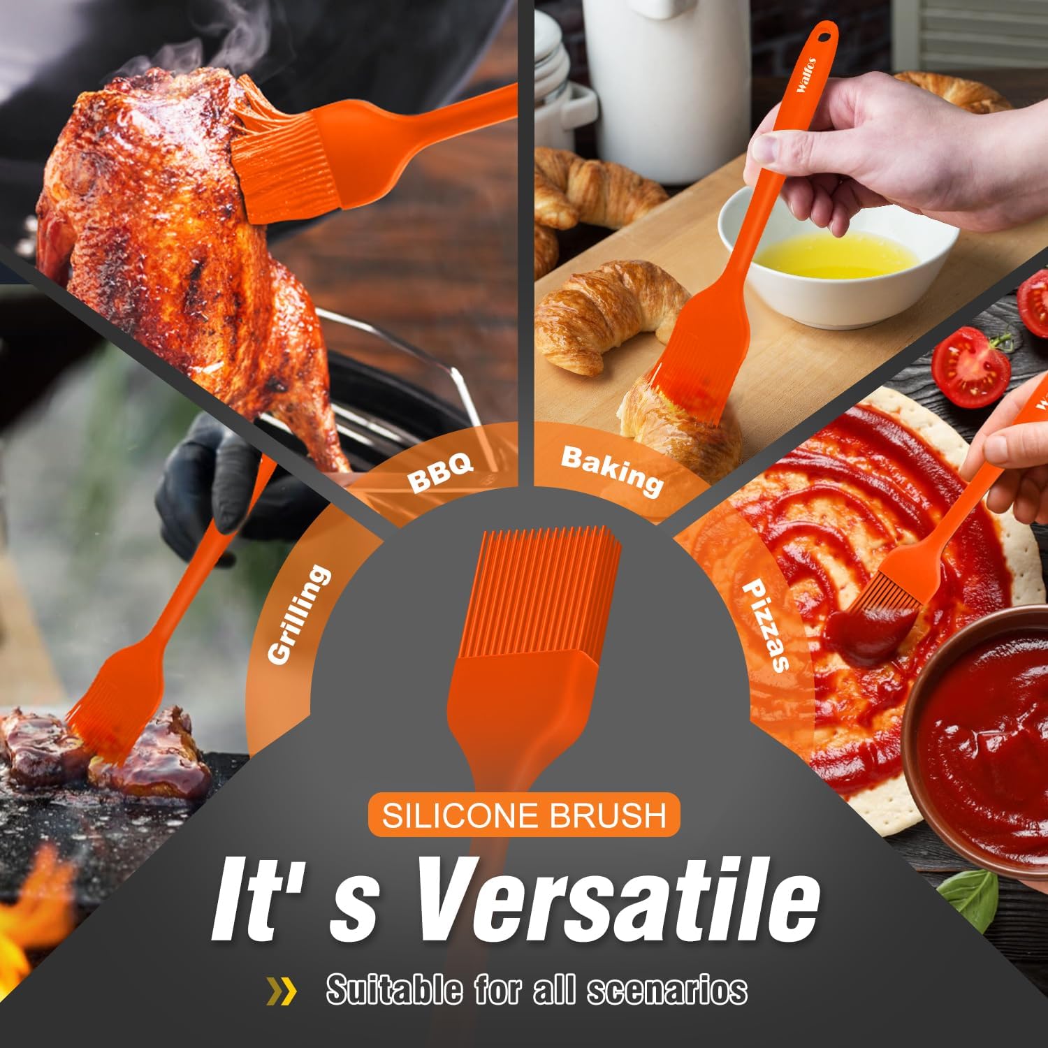 Walfos Silicone BBQ Gloves - Heat Resistant Grilling Gloves Set with Pork Shredder Claws & Brush, Non-Slip Kitchen Silicone Oven Mitt with Protective Cotton Layer, Suit for Indoor & Outdoor, Orange
