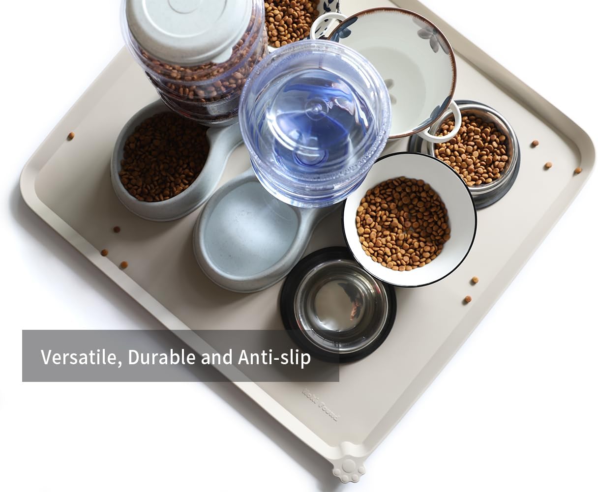 Hoki Found XX-Large Silicone Pet Feeding Mats - Non Slip Dog Cat Bowl Placemats - Waterproof for Carpet - Cream Brown