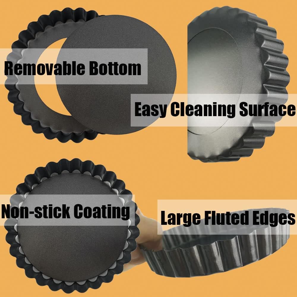 - 【Premium 5 Inch Tart Pans with Removable Bottom】Crafted from thickened 0.6mm carbon steel, DATANYA 5-inch tart pans with removable bottoms are built to last, offering superior durability compared to standard pans. The deep fluted edges add a touch of elegance, making them perfect for creating stunning individual tartlets, quiches, and mini desserts. Elevate your baking game with these professional-grade tart pans.