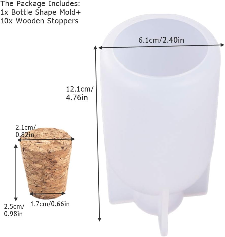 - 【WHAT YOU WILL GET】The package includes: 1x Bottle Shape Mold+10x Wooden Stoppers(Please note: lights are not include). Bottle shape mold size: 2.40x 2.40x 4.76in. Wooden stopper size: 0.82x 0.66x 0.98 in