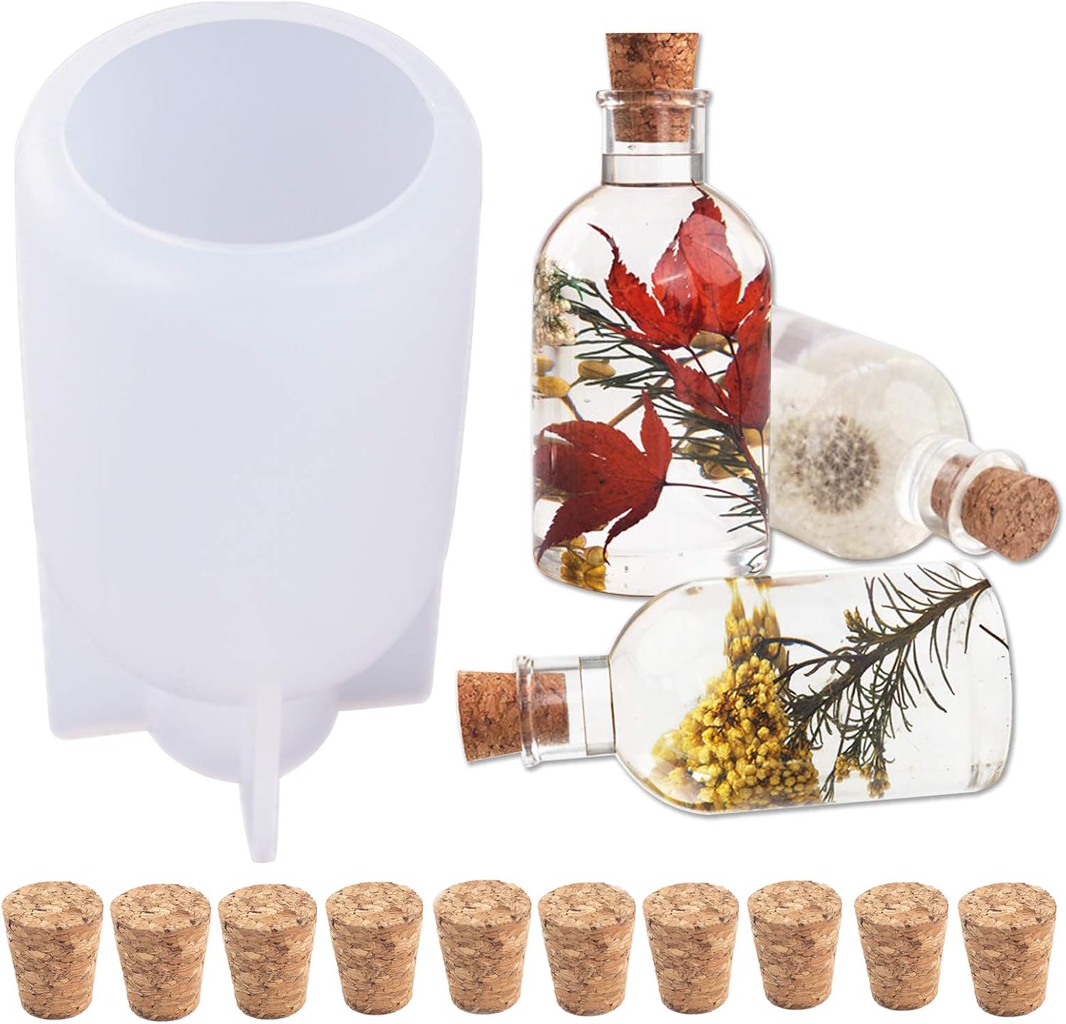 Lamp Shade Resin Mold with 10PCS Wooden Stoppers Creative Bottle Shape Silicone Molds for Epoxy Resin Casting Candle Soap Making Flower Specimen Home Party Decor Gift Art Craft Supplies