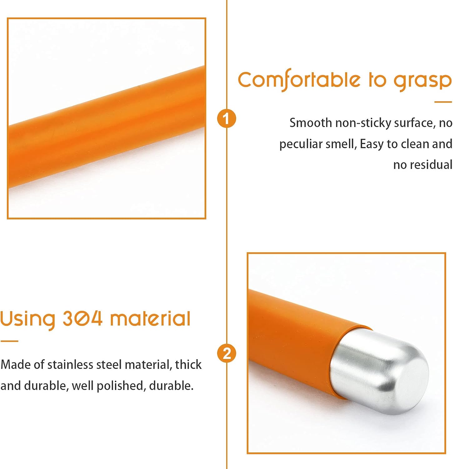 - [Multiple choices&High Quality]:Remeel rolling pin provides blue, green, orange and red for options. With seamless 304 stainless steel structure, it is built to last. You can use it for a long time without any extra maintenance except cleaning with fresh water.