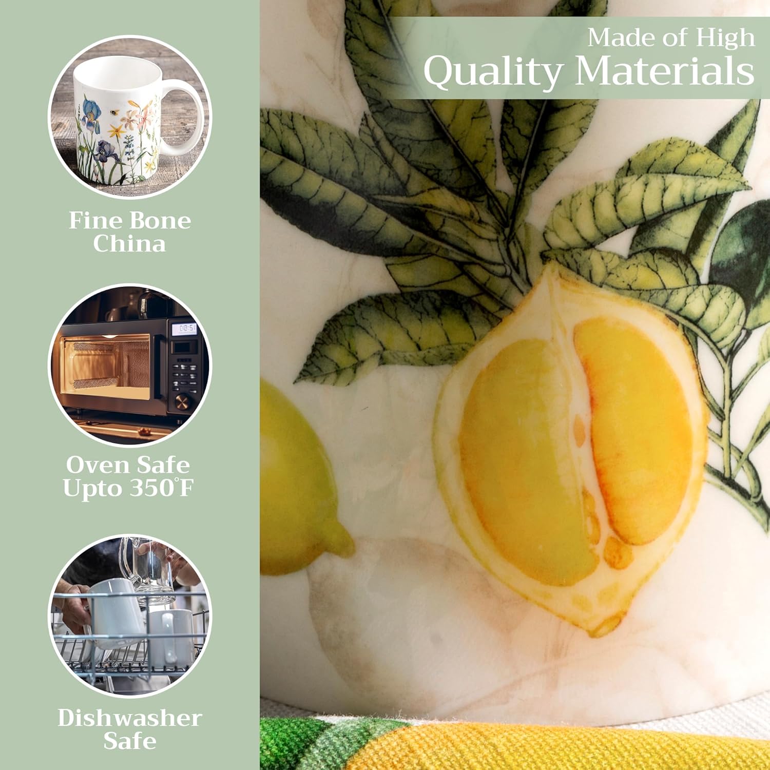 - Easy Care & Maintenance: Microwave, dishwasher, and oven safe up to 350°F. These bone china mugs are built for convenience and durability, making cleanup and reheating simple without compromising on quality