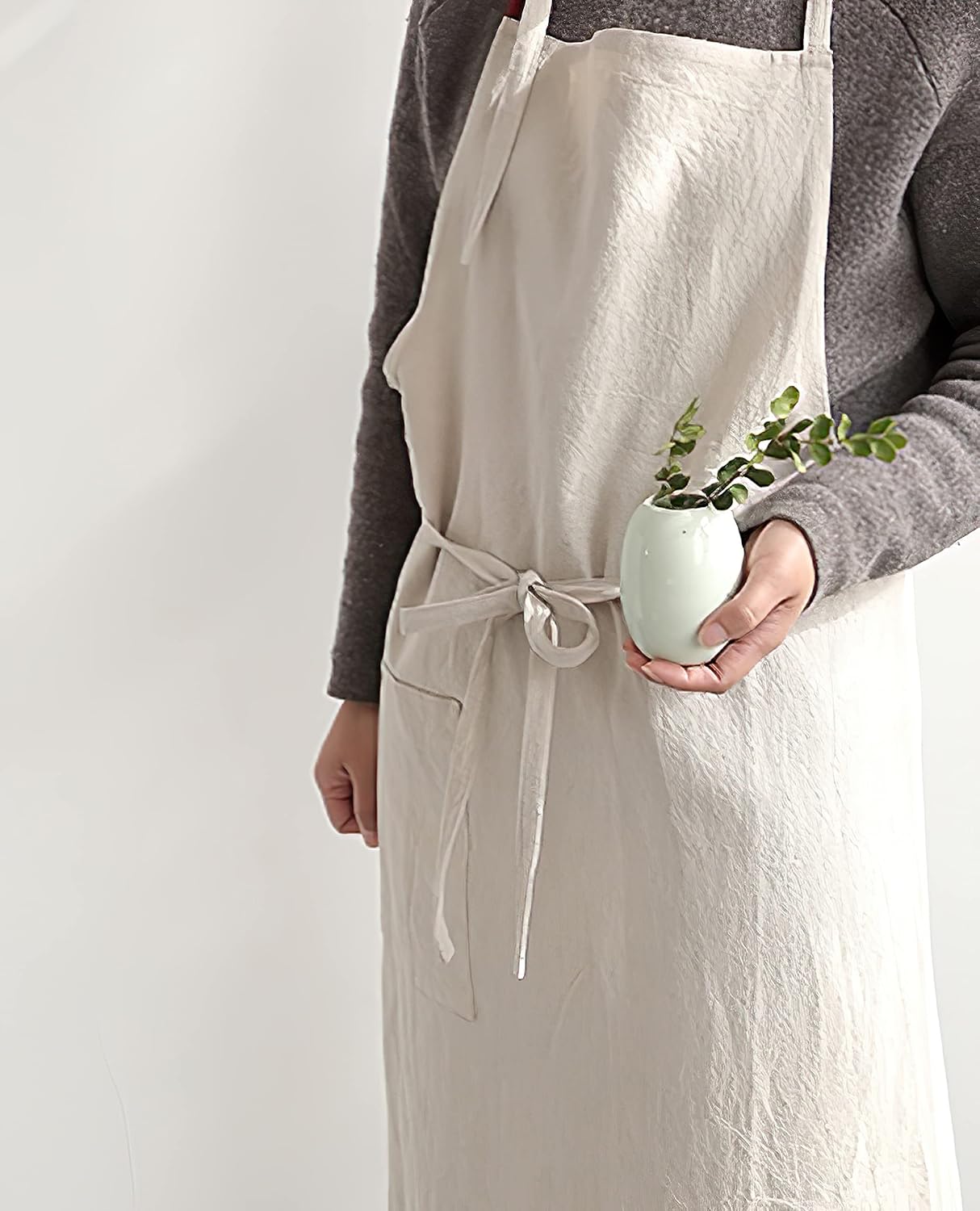 HANEE Kitchen Apron for Women & Men (9 Colors) Linen Cooking Aprons with pocket