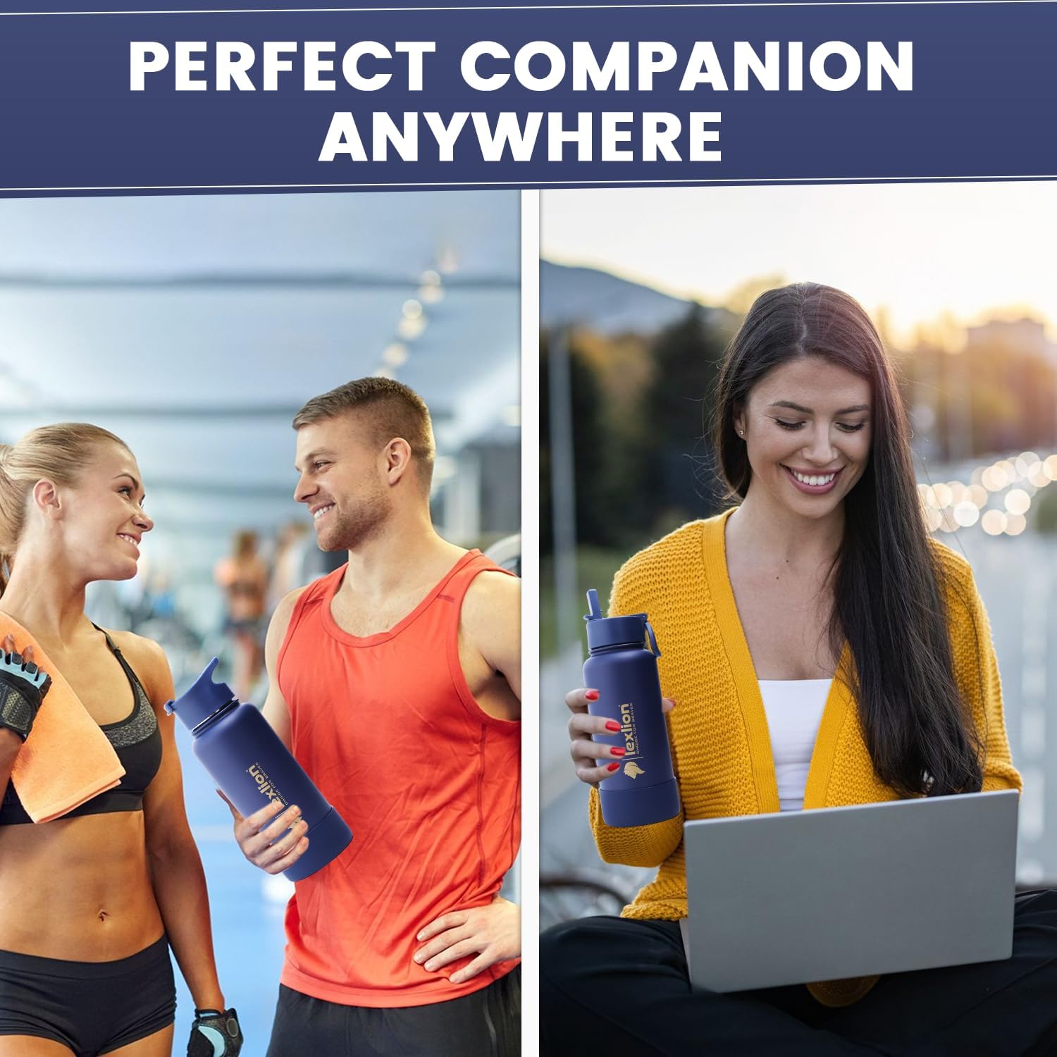 - ✅LIDS & INFUSER/STRAINER- Lexlion water bottle 32 oz comes W/3 LIDS! a spout lid, a flip lid & and a third lid which is straw lid ( for new version) or stainless steel lid ( for old version), 100% leak-proof & dishwasher safe. It includes a newly designed 2-piece strainer stainless steel, a very convenient filter to make loose tea leaves, cold coffee brews, herbs, or fruit-infused water. Add them to the filter basket, close it & clip in with water. If an infuser is not needed, remove it.