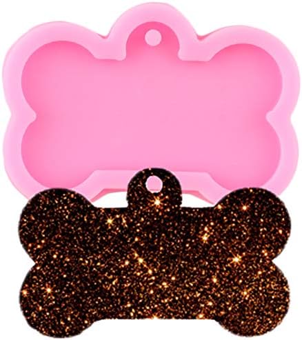 ESEENS 8 Pack Shiny Bone Shape Tag Resin Mold Dog Bone Shape Handmade Keychain Silicone Mold For Resin Epoxy Mold Round Tag Pendant Keychain Mold Tag Mold