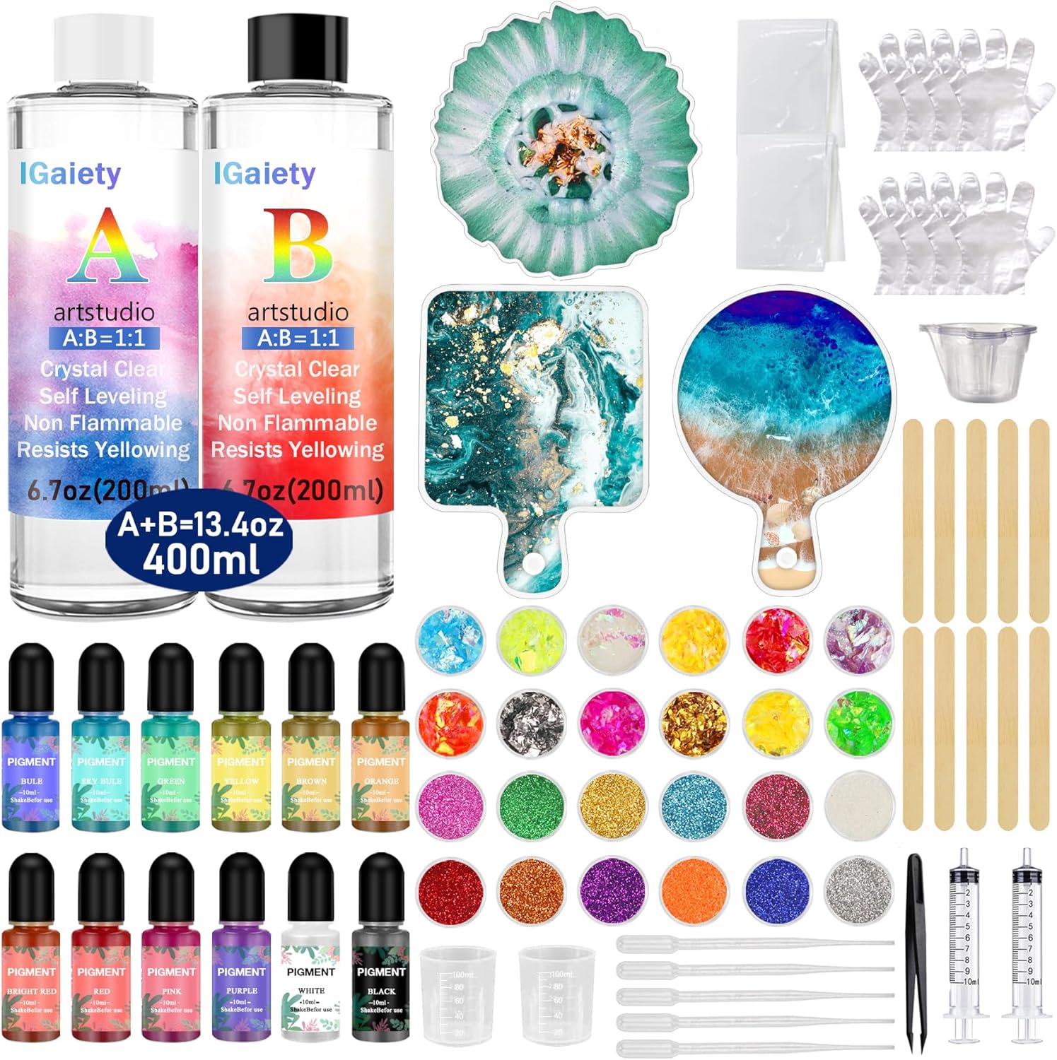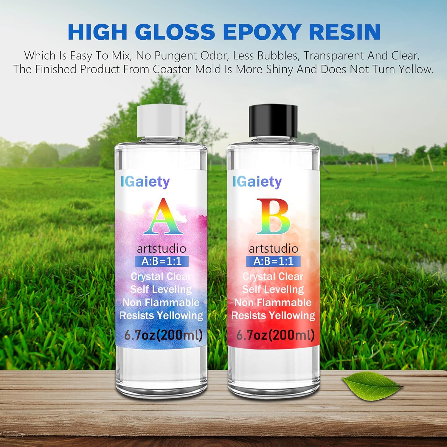 - Variety Resin Pigment: The resin starter kit come with 12 different colors resin pigments, perfect for resin mold beginners or experienced enthusiast, just a small drop can have a great effect on your resin coasters,variety pigment colors can porvide more possiblity on your resin mold coaster , not only that this resin pigment included in this diy coasters kit mix well in resin, and they are natural and non- toxic ,you can use this resin pigment with confidence