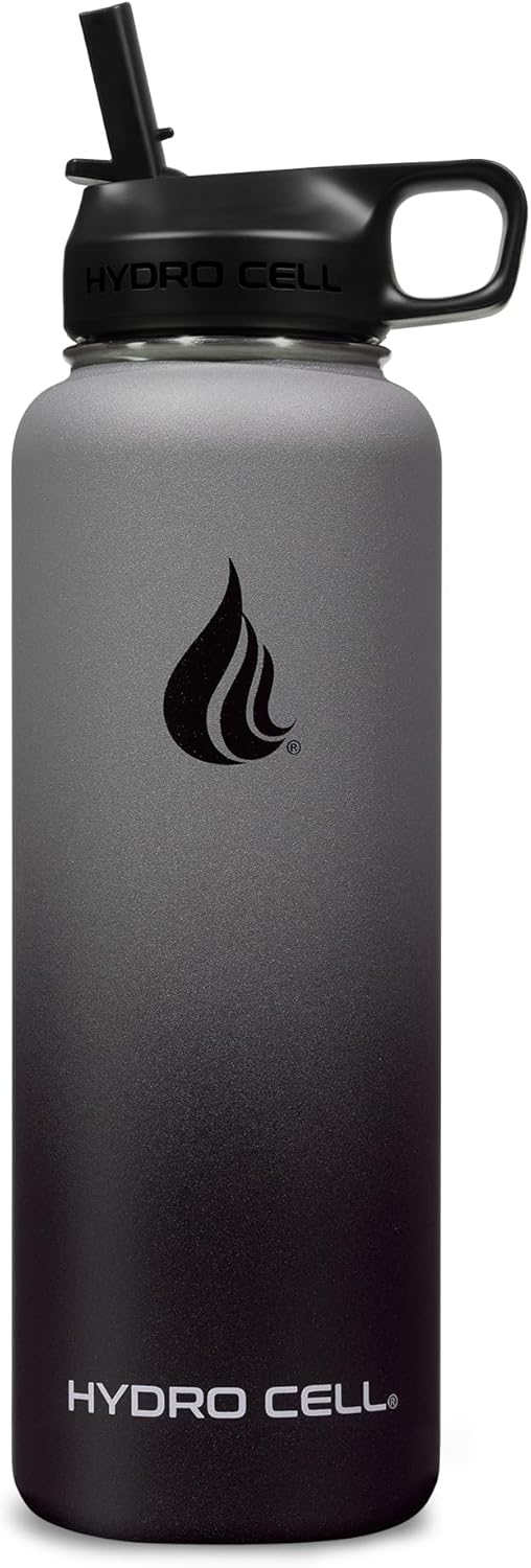 HYDRO CELL Stainless Steel Insulated Water Bottle with Straw - For Cold & Hot Drinks - Metal Vacuum Flask with Screw Cap and Modern Leakproof Sport Thermos for Adults (Graphite/Black 40oz)