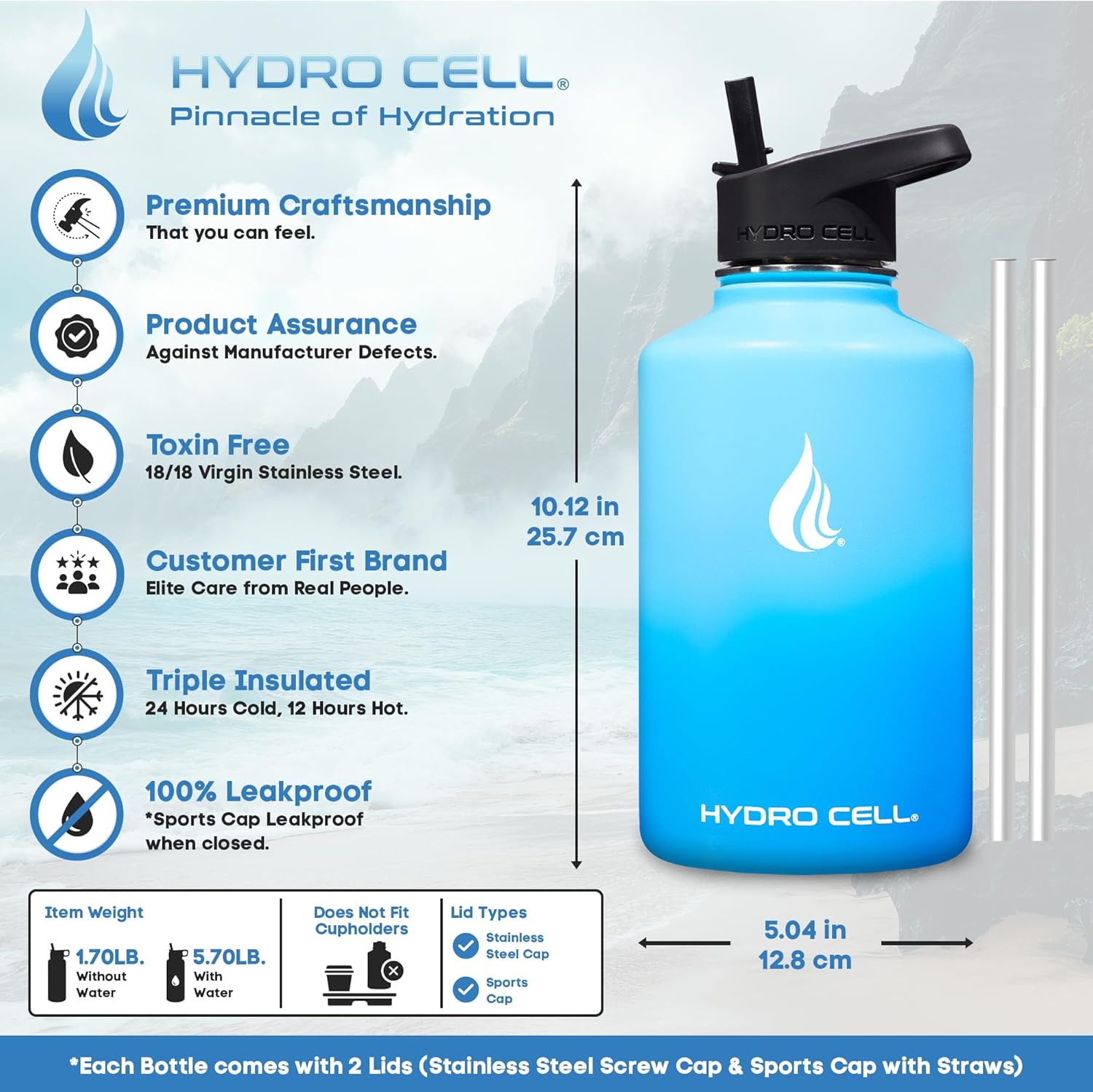 HYDRO CELL Stainless Steel Insulated Water Bottle with Straw - For Cold & Hot Drinks - Metal Vacuum Flask with Screw Cap and Modern Leakproof Sport Thermos for Adults (Sky/Blue 64oz)