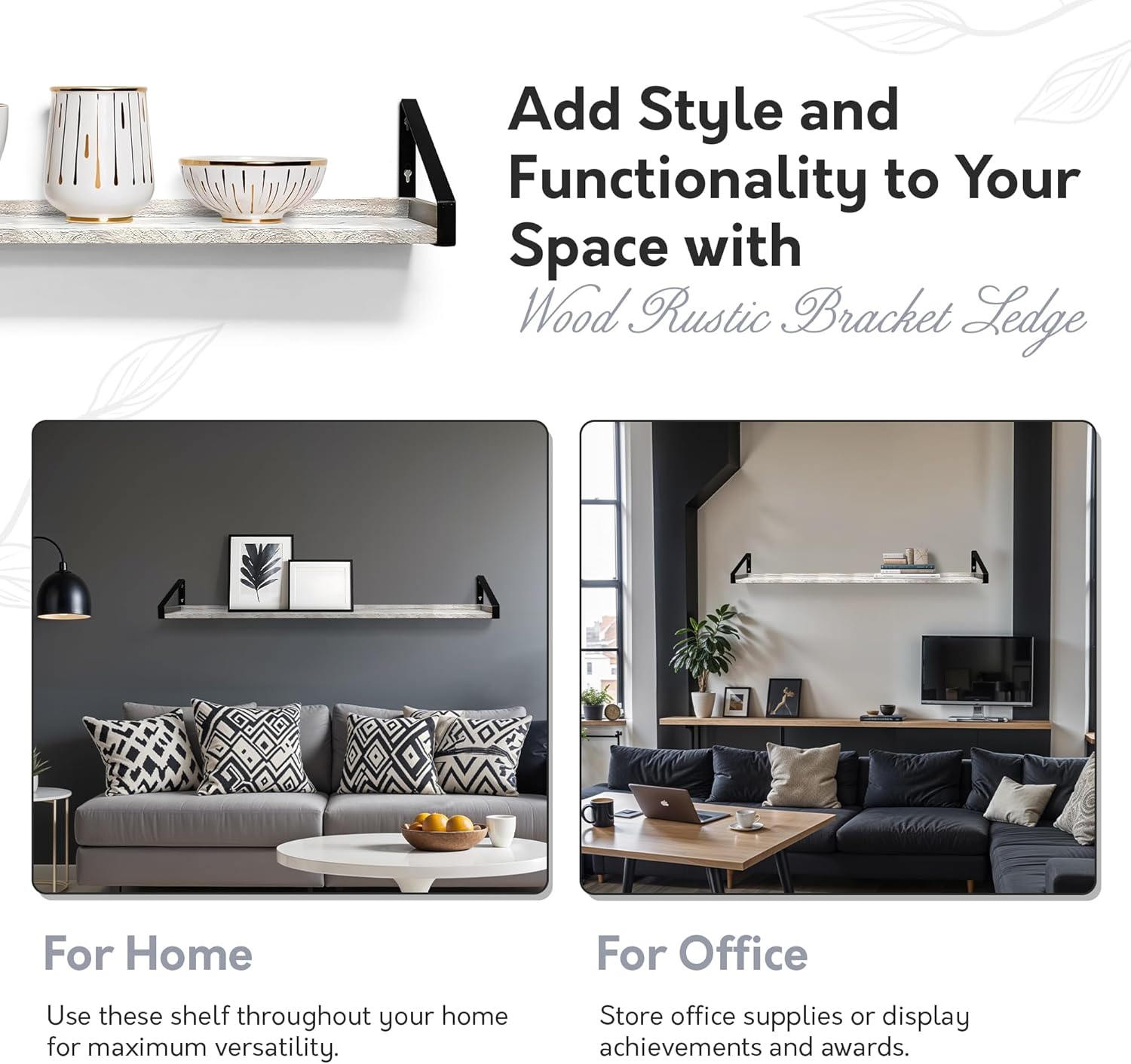 - STYLISH - This real wood ledge with rustic brackets are perfect for any decor.