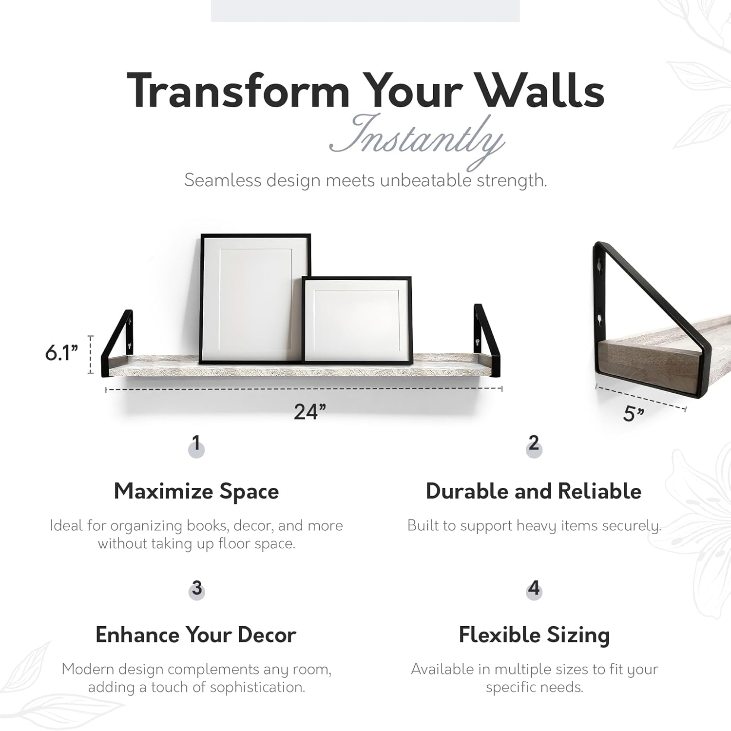 - DECLUTTER YOUR SPACE Organize and showcase your favorite decor, photos, or plants with this stylish floating shelf for the wall, perfect for adding a modern touch to your living room, kitchen, or bathroom